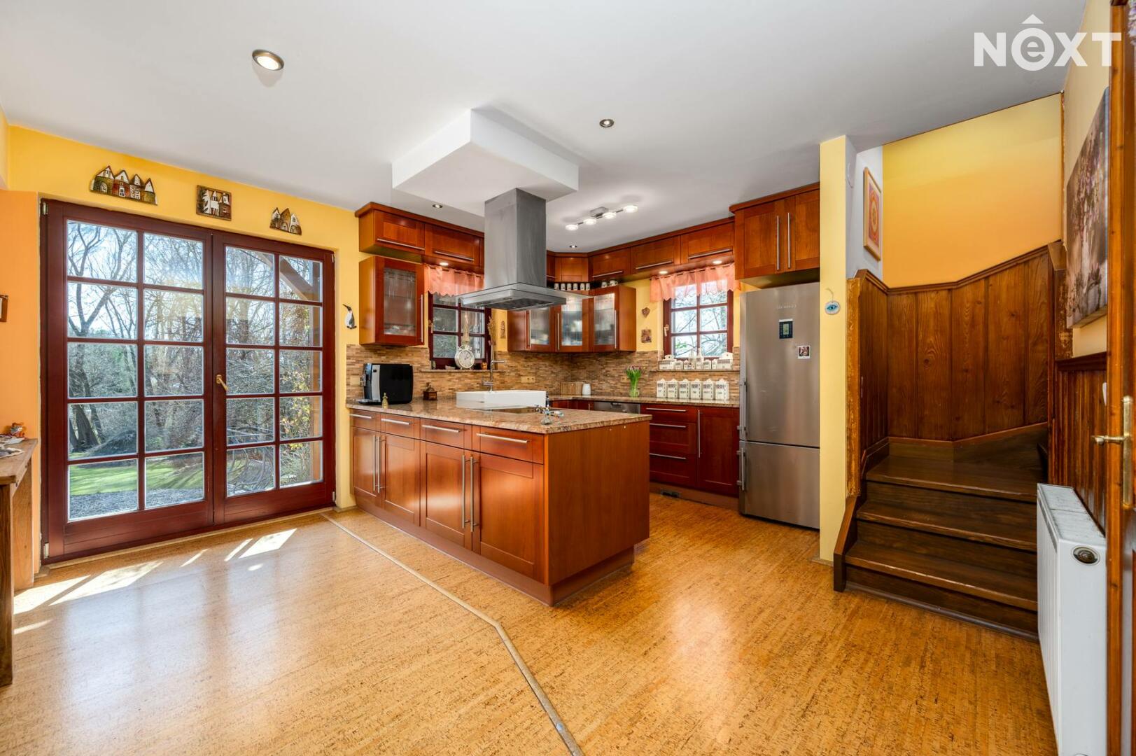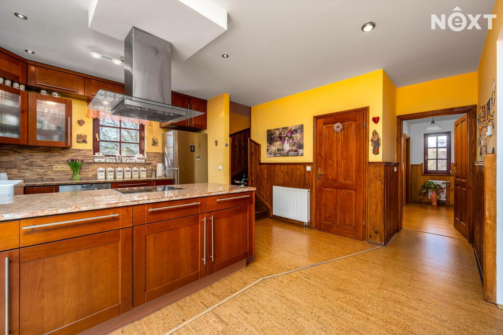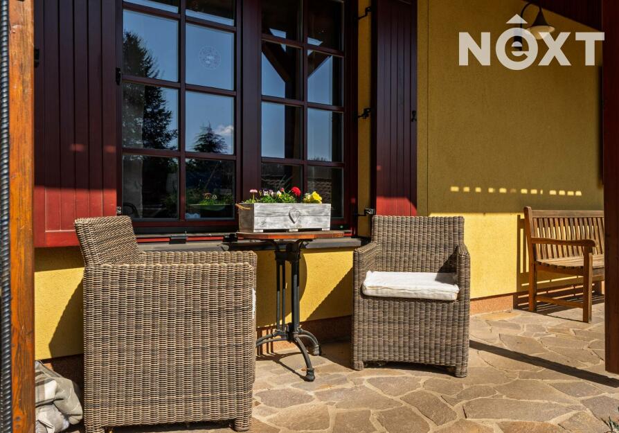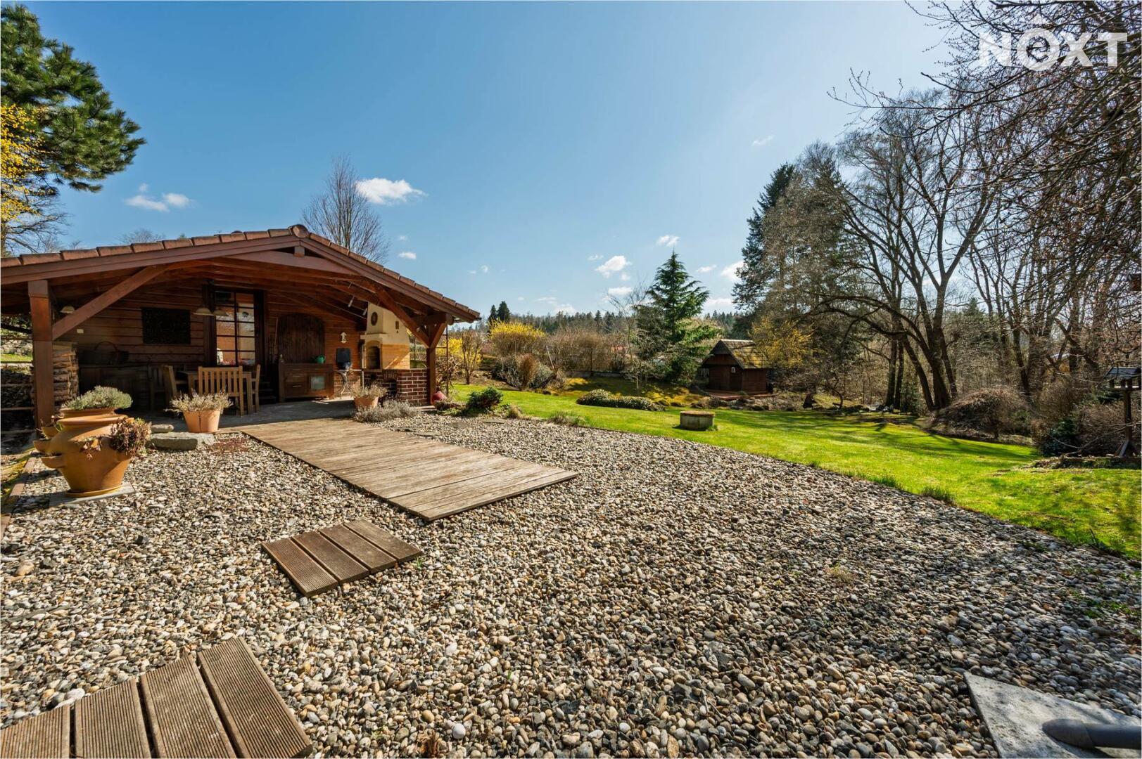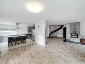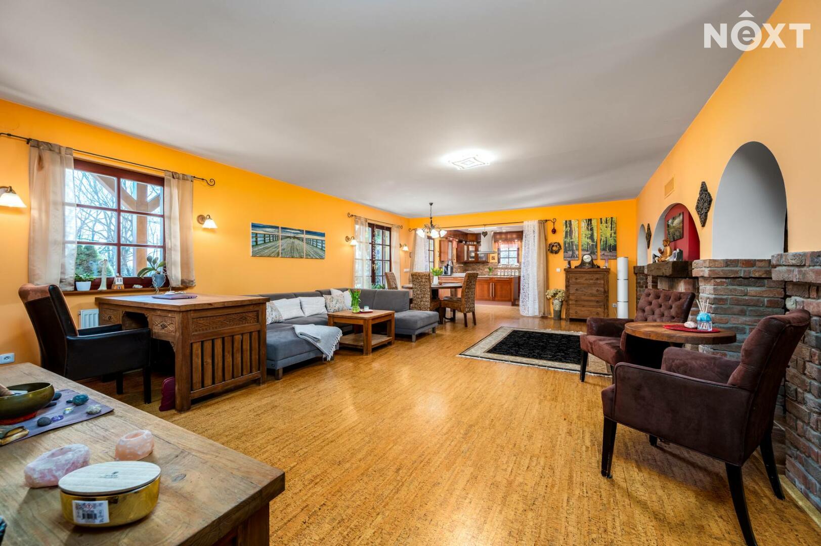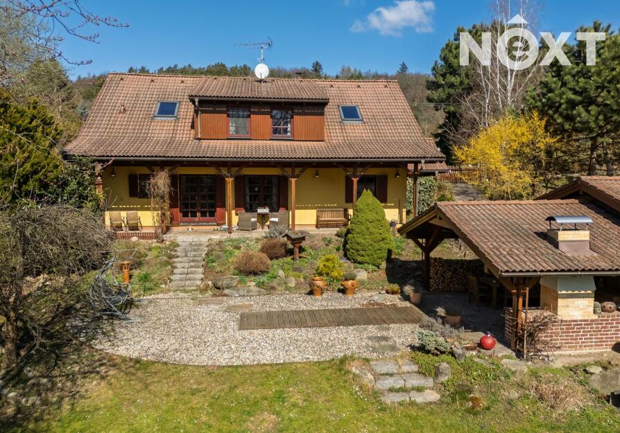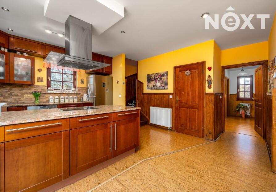 Srdcem domu je otevřený obytný prostor s krbem, který přirozeně propojuje zónu pro společná setkání s jídelnou a kuchyní. Velká francouzská okna vpouští dovnitř světlo i výhled do zahrady, takže interiér působí vzdušně a živě po celý rok. Dispozice nabízí několik neprůchozích ložnic, které dávají soukromí rodičům i dětem, dvě koupelny pro pohodlí každodenního provozu a praktické zázemí v podobě centrálního vysavače či plynového kotle. Dům z roku 2002 je dřevostavbou ve velmi dobrém stavu – připravený k okamžitému bydlení bez nutnosti zásadních úprav.