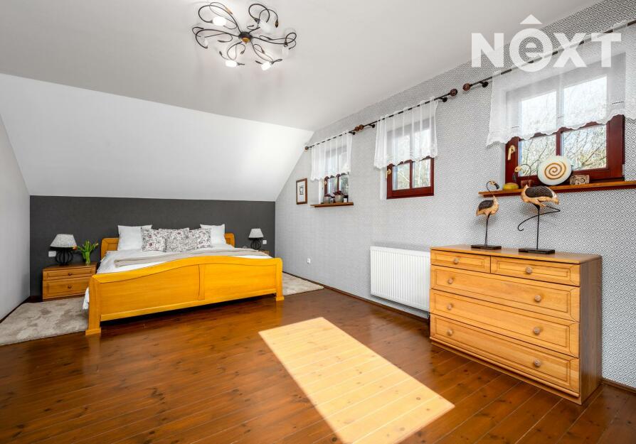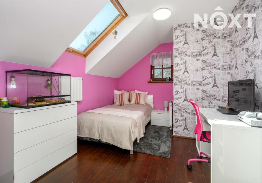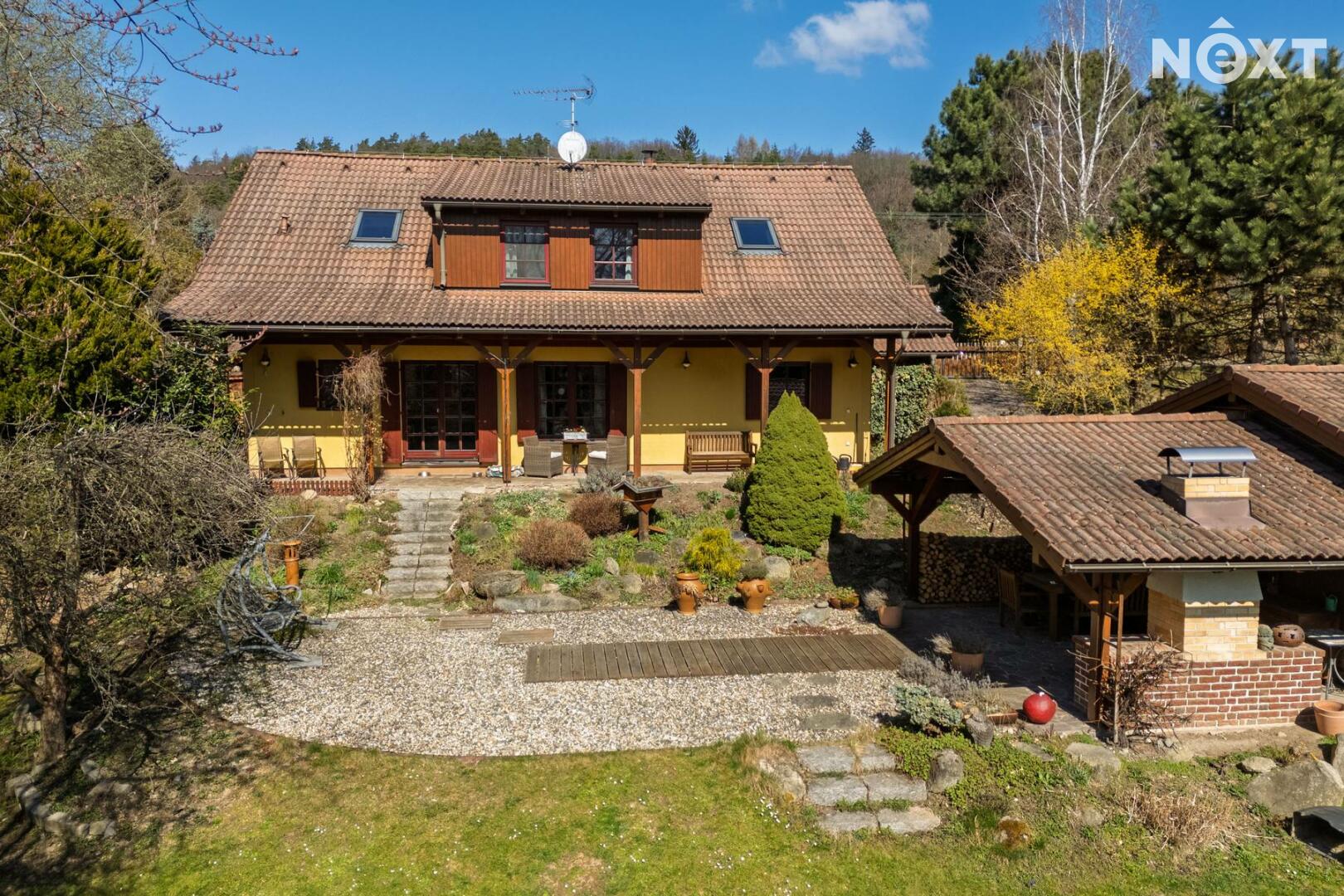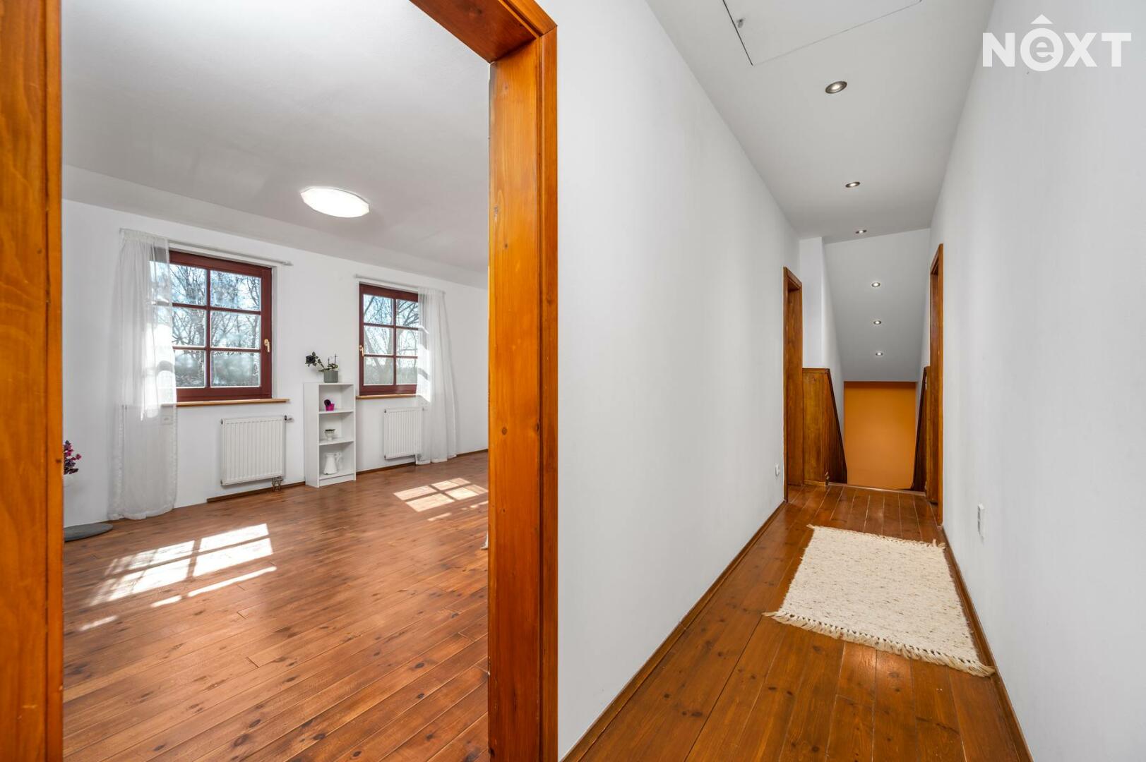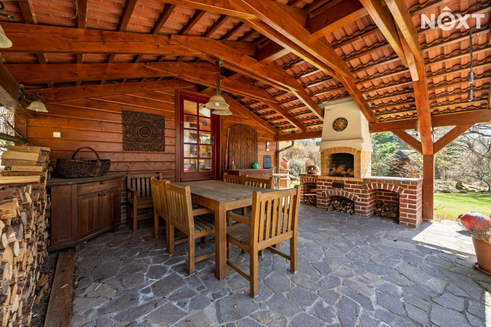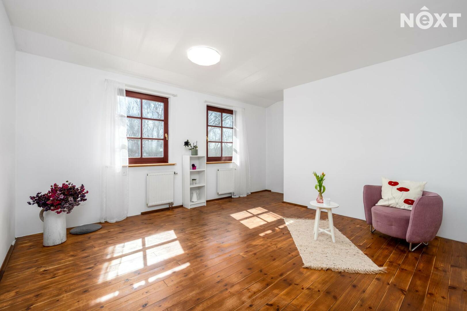 Srdcem domu je otevřený obytný prostor s krbem, který přirozeně propojuje zónu pro společná setkání s jídelnou a kuchyní. Velká francouzská okna vpouští dovnitř světlo i výhled do zahrady, takže interiér působí vzdušně a živě po celý rok. Dispozice nabízí několik neprůchozích ložnic, které dávají soukromí rodičům i dětem, dvě koupelny pro pohodlí každodenního provozu a praktické zázemí v podobě centrálního vysavače či plynového kotle. Dům z roku 2002 je dřevostavbou ve velmi dobrém stavu – připravený k okamžitému bydlení bez nutnosti zásadních úprav.