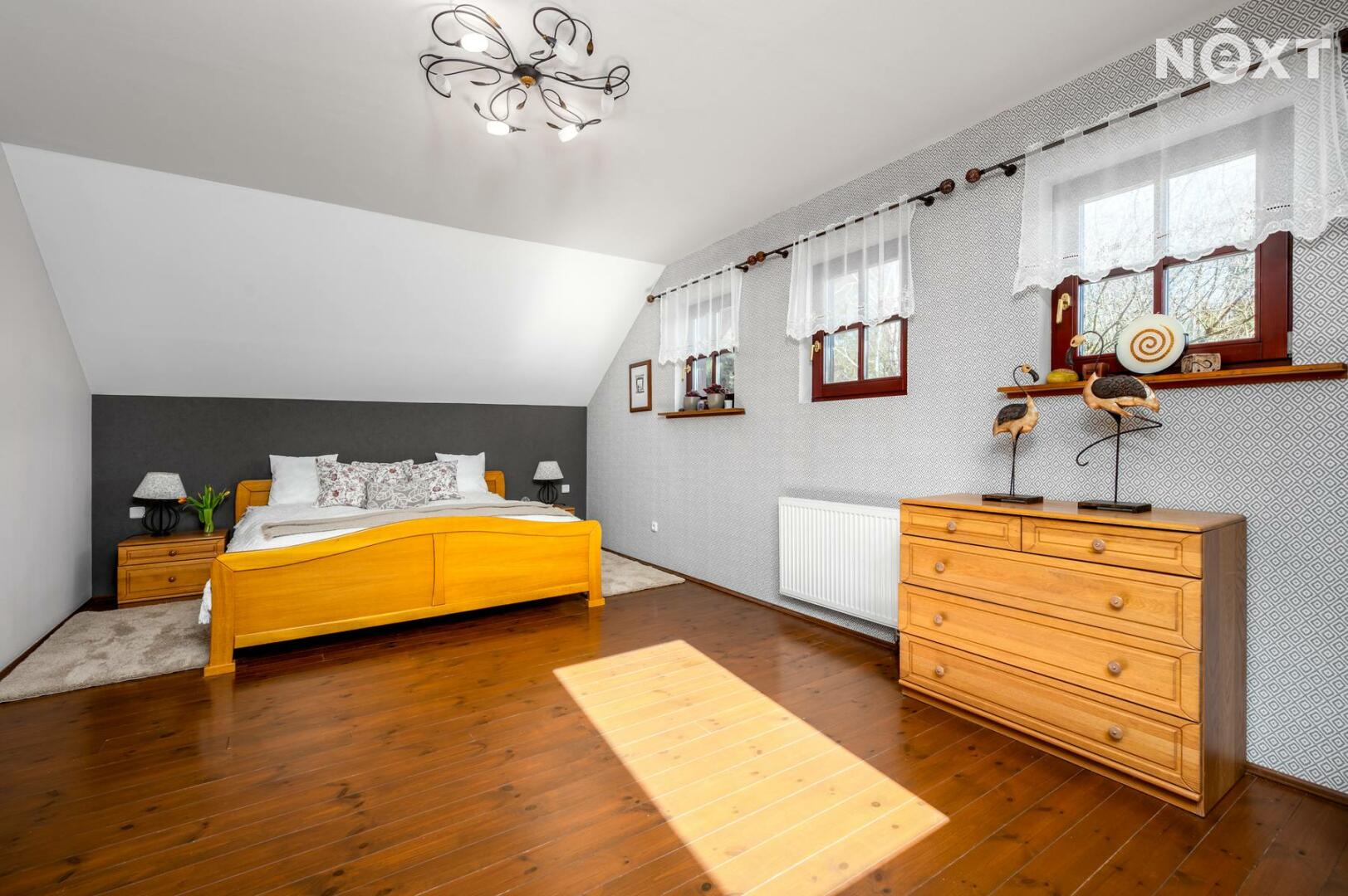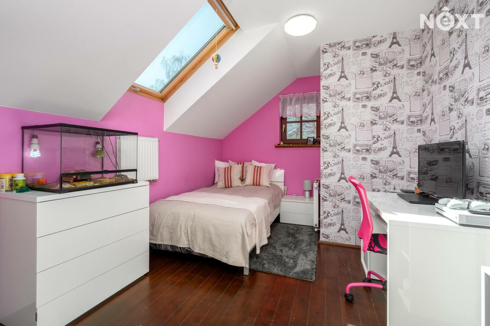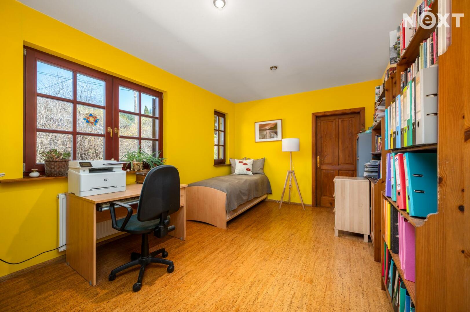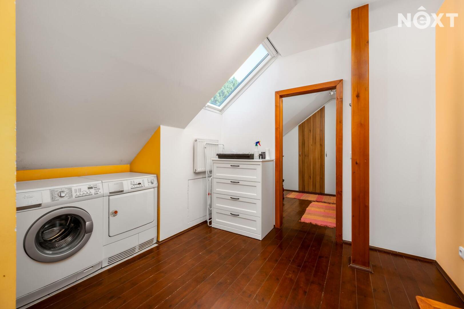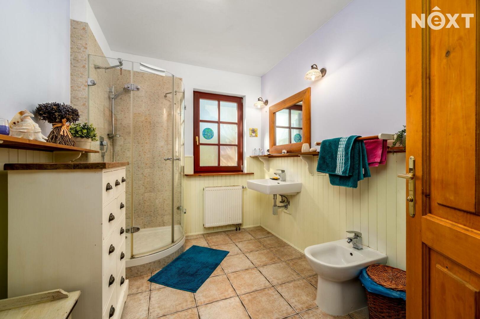Srdcem domu je otevřený obytný prostor s krbem, který přirozeně propojuje zónu pro společná setkání s jídelnou a kuchyní. Velká francouzská okna vpouští dovnitř světlo i výhled do zahrady, takže interiér působí vzdušně a živě po celý rok. Dispozice nabízí několik neprůchozích ložnic, které dávají soukromí rodičům i dětem, dvě koupelny pro pohodlí každodenního provozu a praktické zázemí v podobě centrálního vysavače či plynového kotle. Dům z roku 2002 je dřevostavbou ve velmi dobrém stavu – připravený k okamžitému bydlení bez nutnosti zásadních úprav.