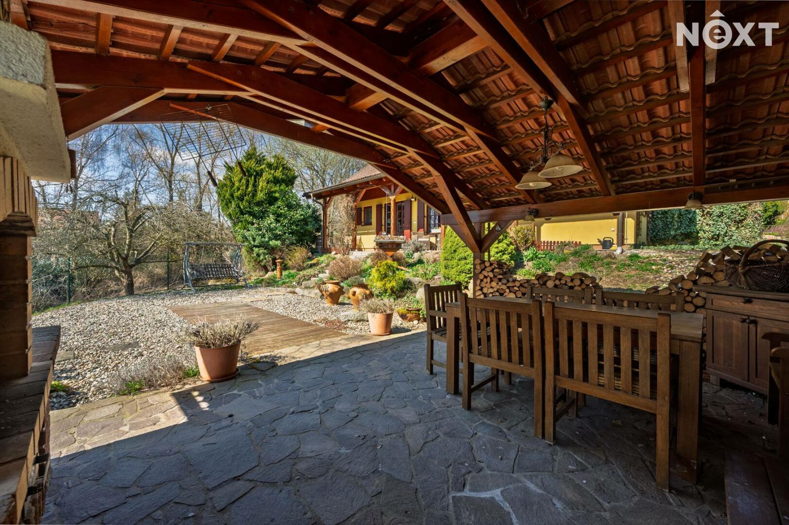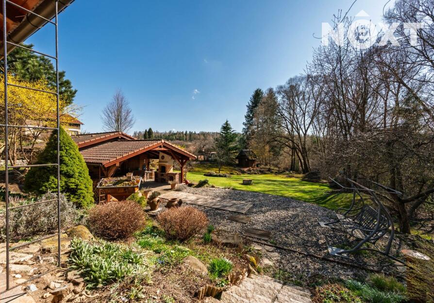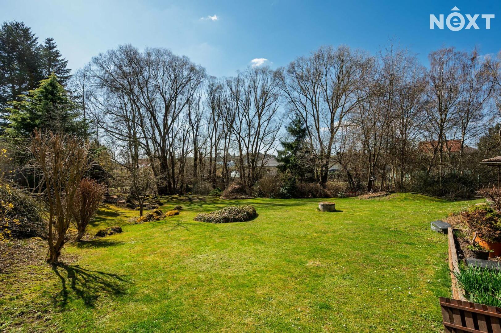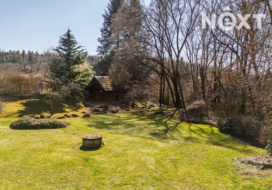 Zahrada je samostatným světem. Vzrostlé stromy vytvářejí přirozenou ochranu soukromí a příjemné mikroklima v letních měsících. Prostor pro hry, rodinné oslavy i klidné posezení doplňuje zahradní domek s venkovním zázemím. Parkování přímo na pozemku řeší každodenní logistiku rodiny bez kompromisů. Navíc zde máte možnost napojení na kanalizaci, což je praktický benefit do budoucna.