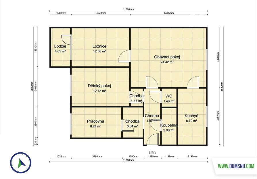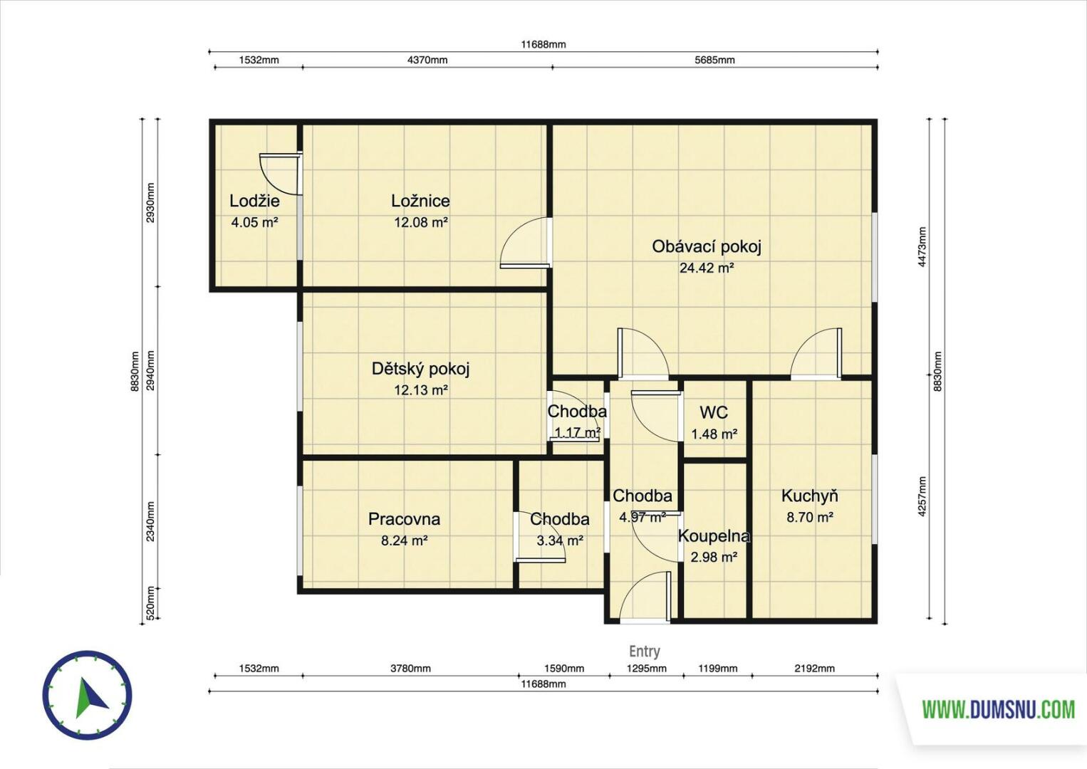 revitalizovaného panelového domu. Celková podlahová plocha včetně sklepu činí 82,93 m2 poskytuje