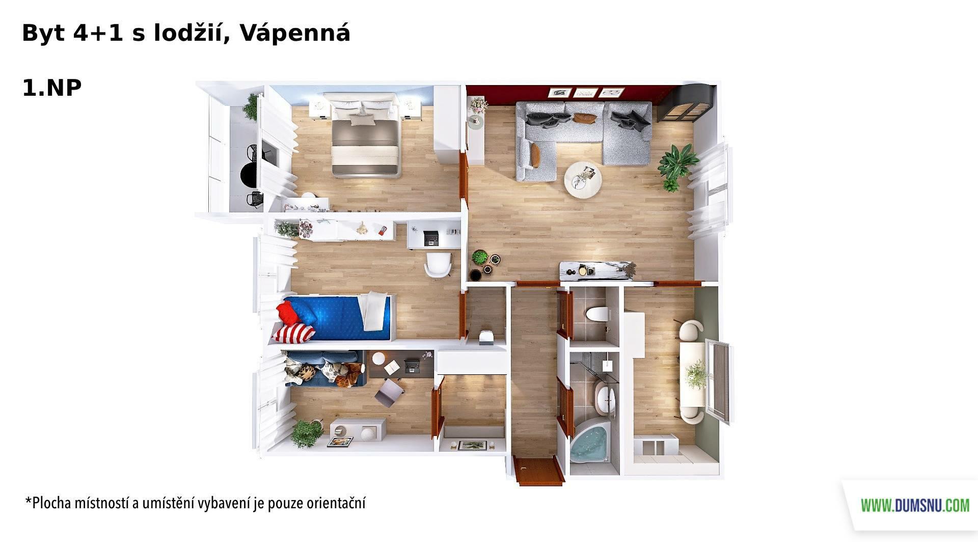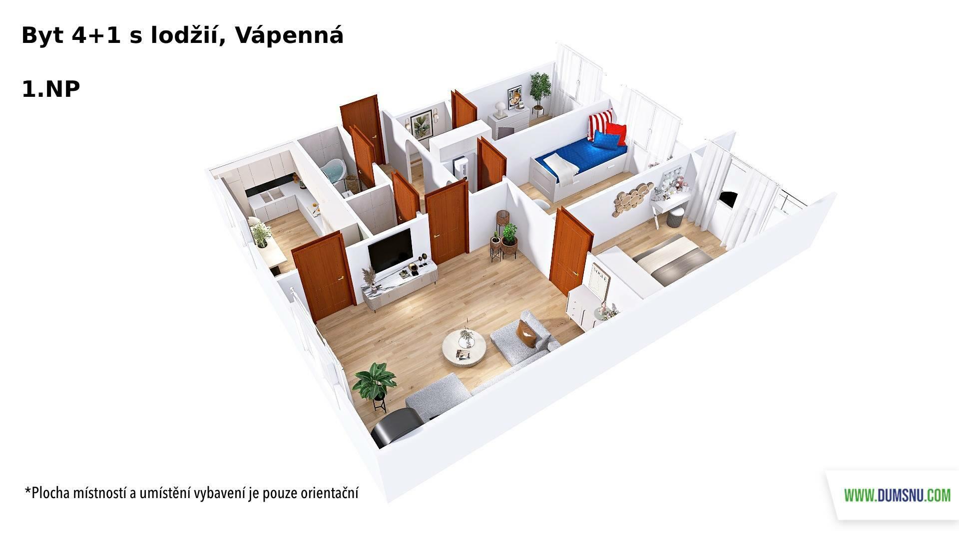 V obci Vápenná vám nabízíme ke koupi byt o dispozici 4+1 v osobním vlastnictví, situovaný v 1.NP
