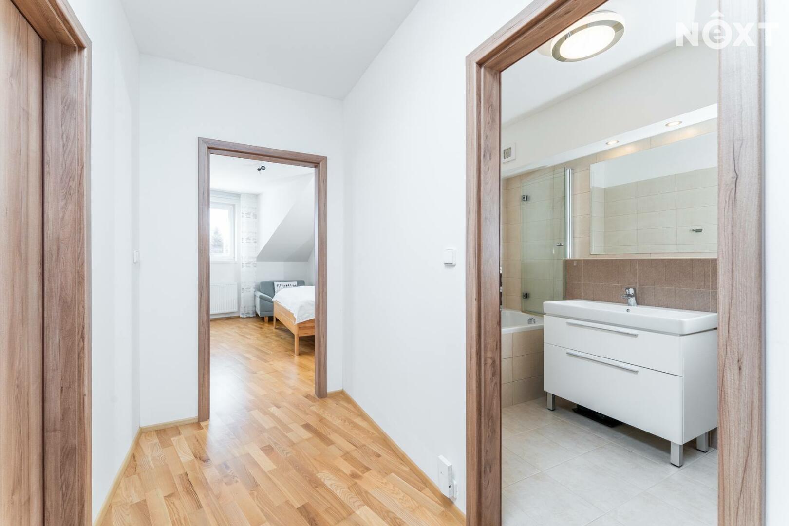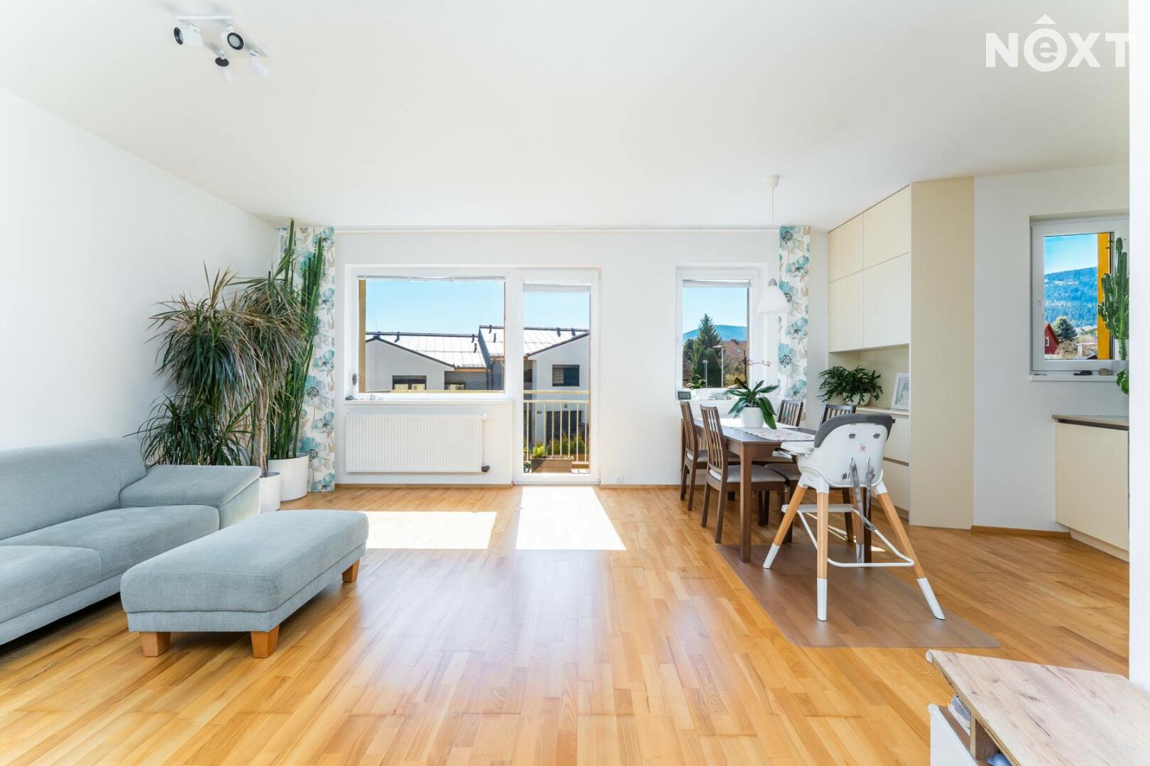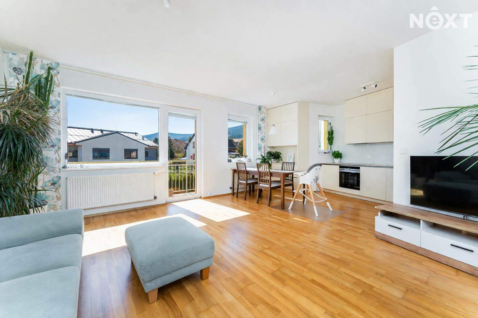 Byt je velmi pěkně zařízen, má dřevěné podlahy, kuchyň na míru s kamennou deskou.