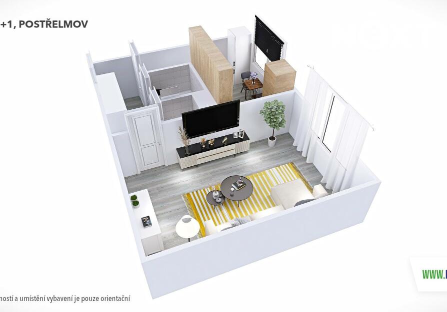 Dispozice nabízí vstupní chodbu s úložnými prostory, koupelnu s vanou, samostatné WC, kuchyni a světlý pokoj orientovaný na východ, kde vás ráno přivítá slunce. Byt se pronajímá včetně elektrického sporáku, pračky a menší lednice – stačí si dovybavit pokoj podle vlastního stylu a můžete ihned bydlet.