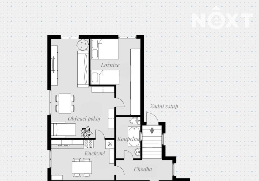 Byt má samostatný vstup a nabízí praktické dispoziční řešení vhodné jak pro vlastní bydlení, tak i jako investici k pronájmu. Součástí prodeje je také vlastní zahrada o výměře 396 m², která poskytuje dostatek prostoru pro relaxaci, zahradničení či trávení volného času s rodinou.