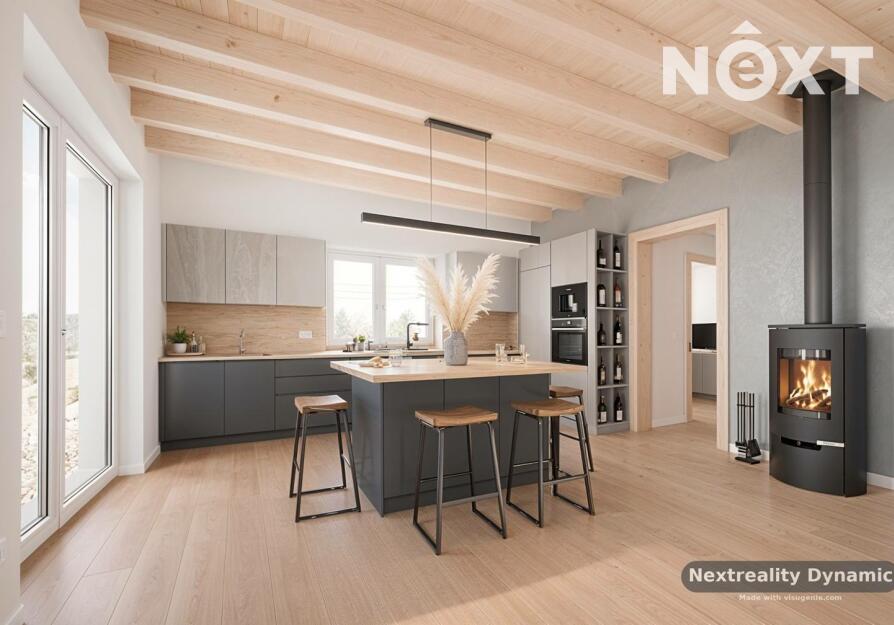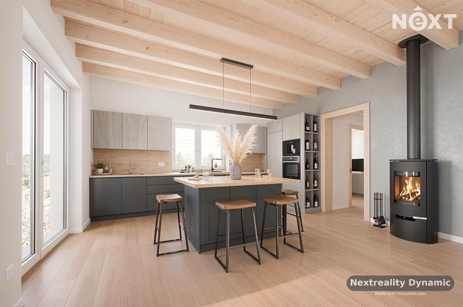 Dominantou domu je světlý obývací prostor s kuchyňským koutem a jídelnou, který tvoří přirozené srdce domova. Nechybí ani příprava na krb, díky které si můžete vytvořit útulnou atmosféru podle svých představ.