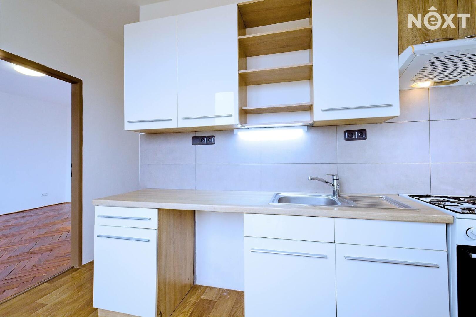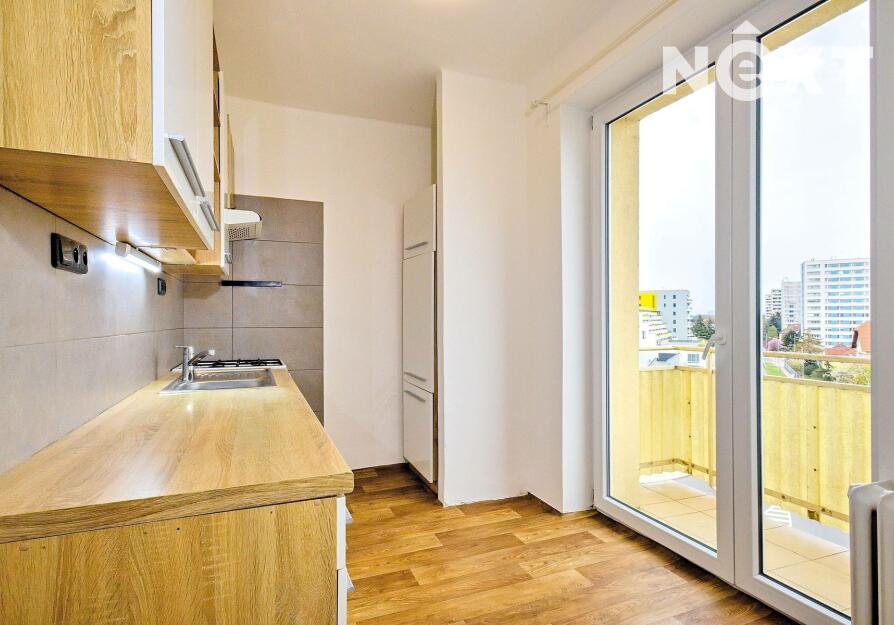 Kuchyně je samostatná a vybavená kuchyňskou linkou, plynovým sporákem a dostatkem úložného prostoru. Z kuchyně je vstup na balkon. Koupelna je po rekonstrukci a disponuje sprchovým koutem, umyvadlem se skříňkou a zrcadlem. Toaleta je řešena samostatně. V bytě je také praktická chodba s prostorem pro úložné řešení.