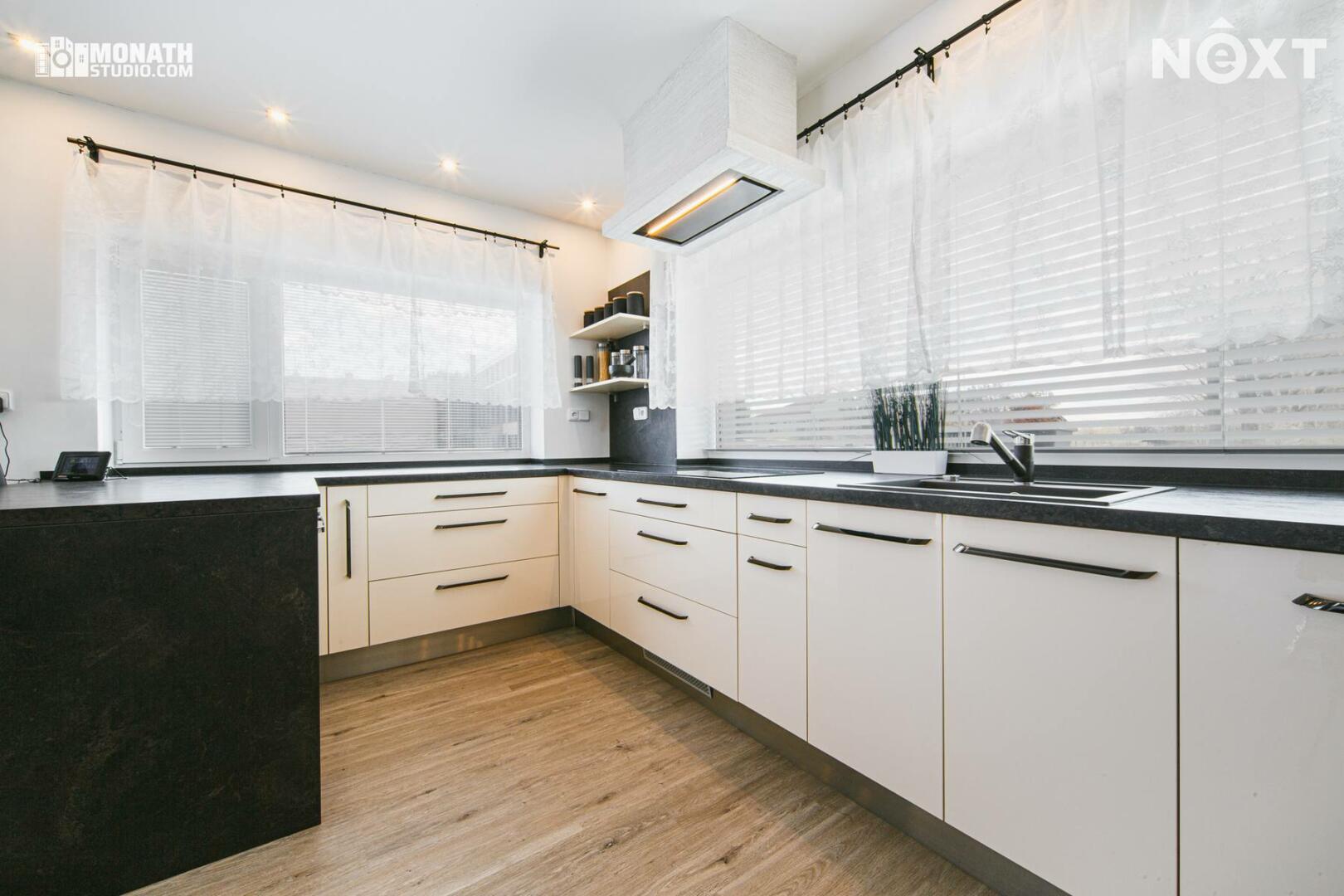 • Luxusní kuchyně na míru s vestavnými spotřebiči značek Beko a Haier a granitovým dřezem Blanco.