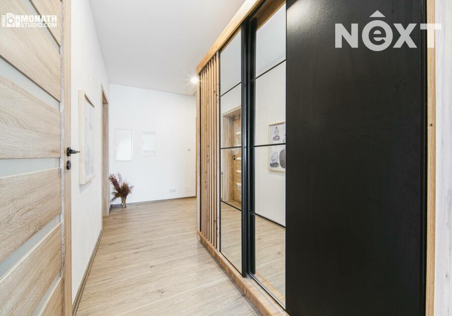 • Prostorná chodba s vestavěnou skříní a vstupní hala s praktickou šatní a botníkovou sestavou se zrcadlem.