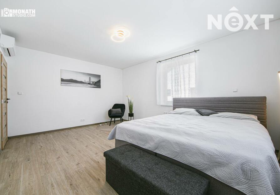 • Hlavní ložnice se sádrokartonovým regálem a prostorem pro velkou šatní skříň (možnost úpravy na pokoj pro dvě děti).