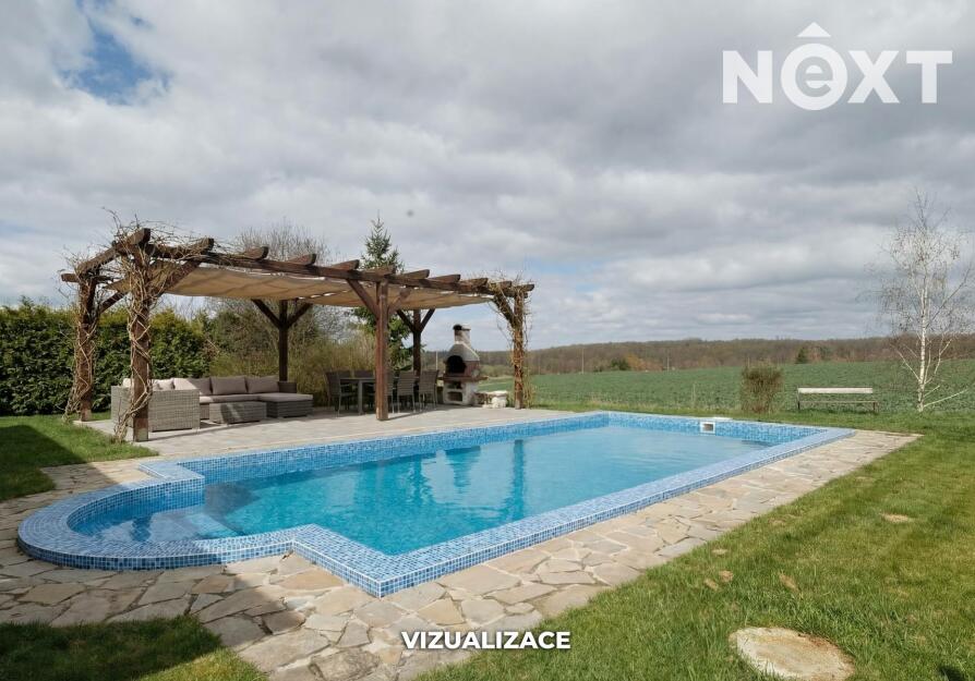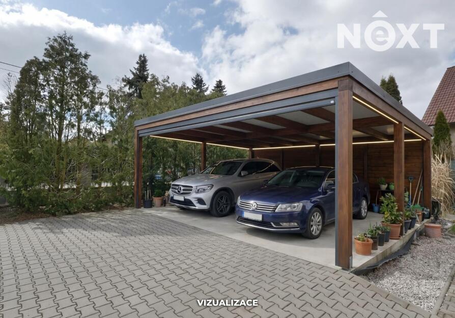 Součástí nemovitosti je prostorná zahrada vhodná k odpočinku i rodinným aktivitám, u domu se nachází příjemné venkovní posezení. Na pozemku je připravena možnost výstavby dvojgaráže, případně krytého stání pro dvě vozidla.