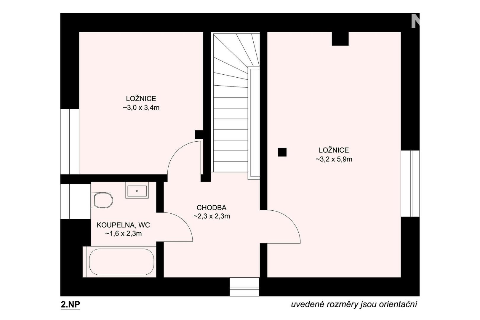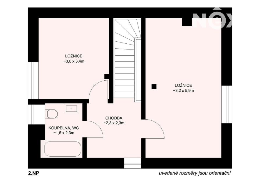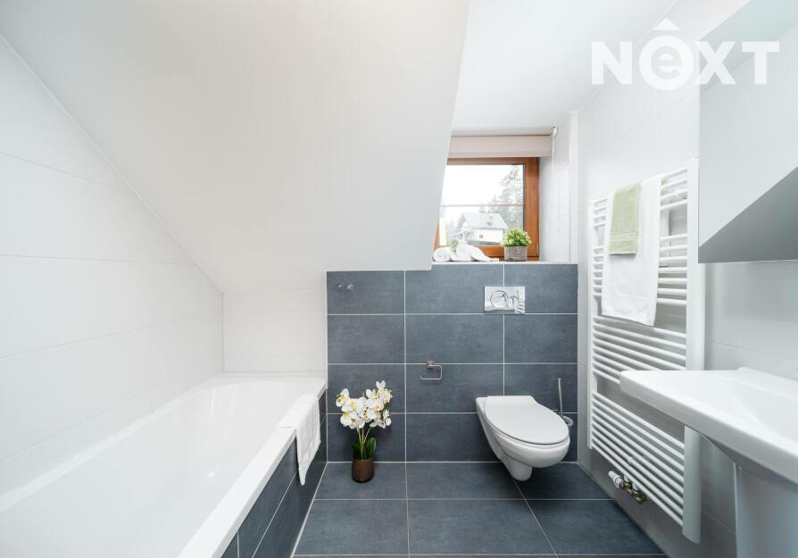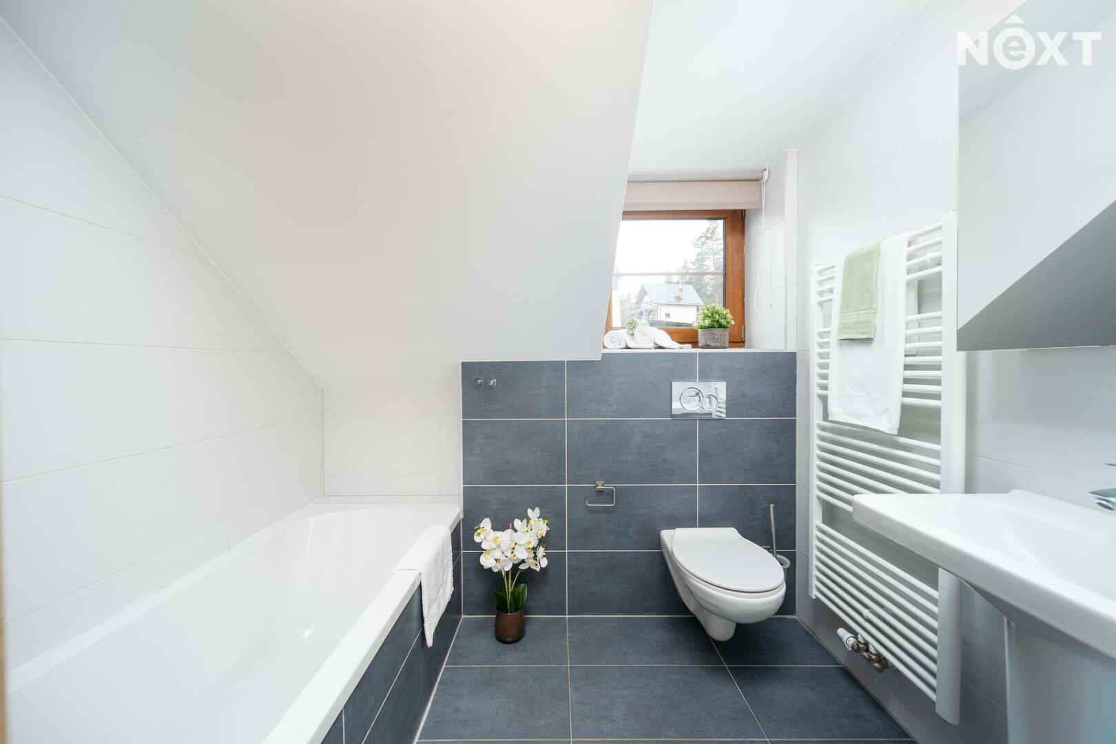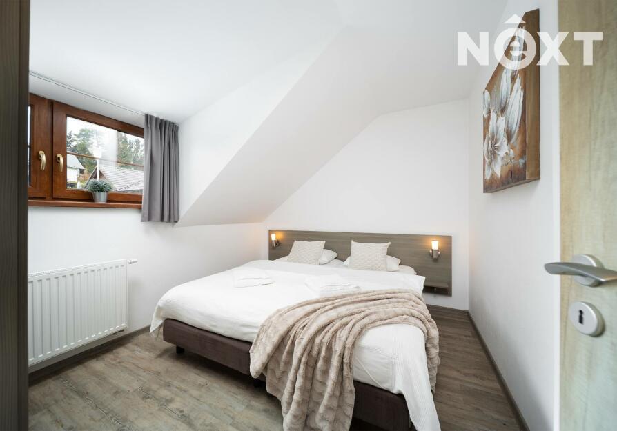 Po schodišti se přesouváme do patra, kde dům přechází do klidové zóny. Dva samostatné pokoje, které dávají flexibilitu – hlavní ložnice a další pokoj, který bez problémů pojme děti, hosty nebo další klienty v rámci krátkodobého pronájmu. Koupelna s vanou je čistá, moderní a připravená na každodenní komfort.