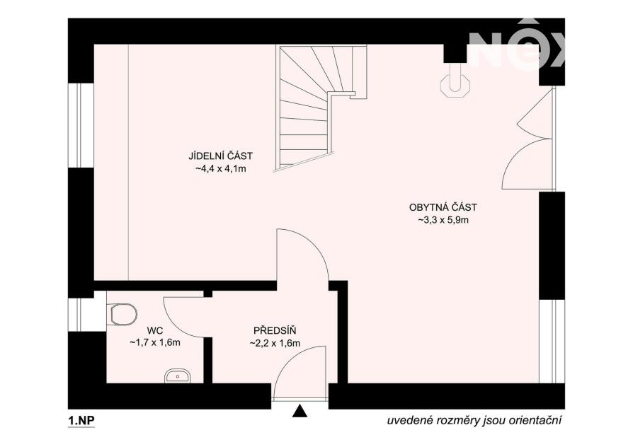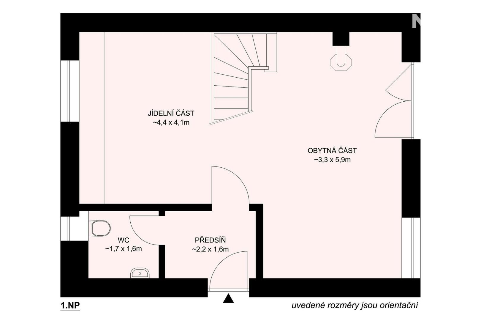 V přízemí se nachází také samostatná toaleta, prakticky umístěná pro každodenní fungování.