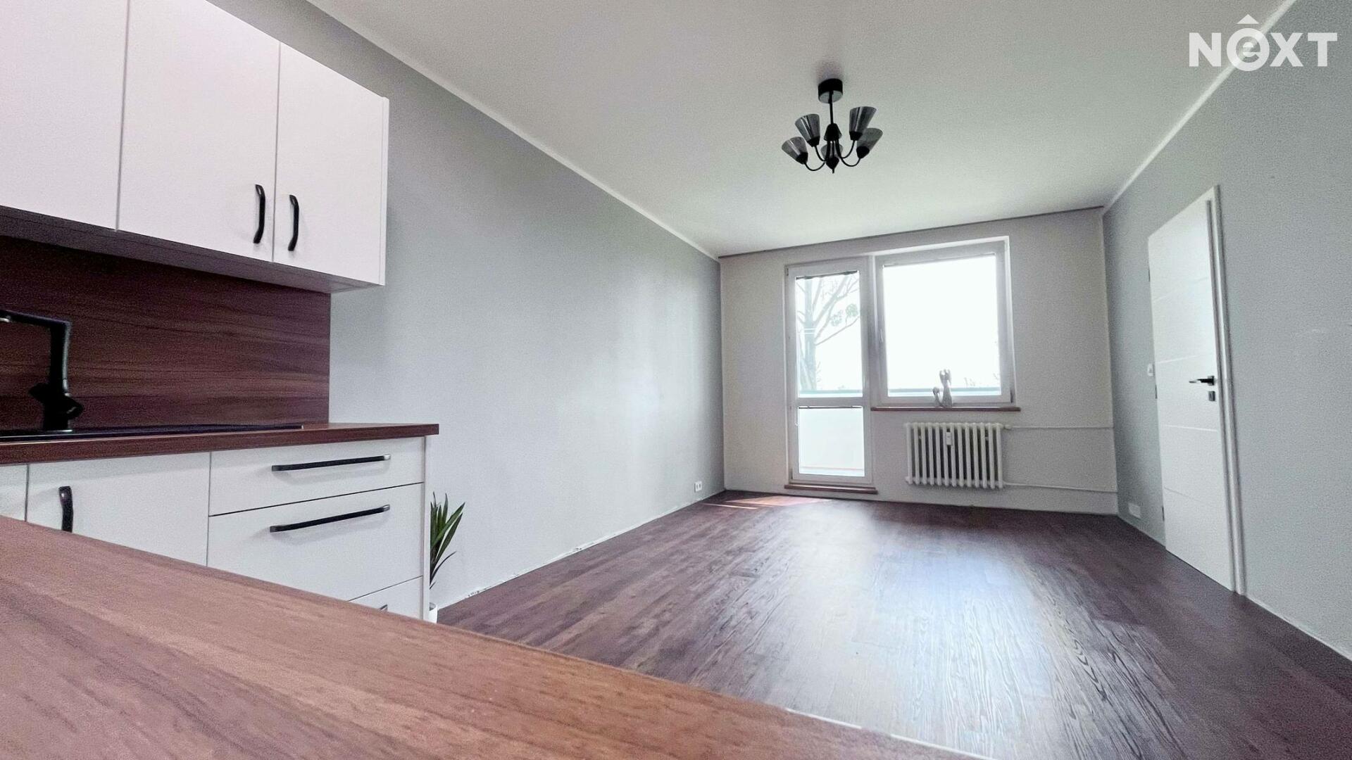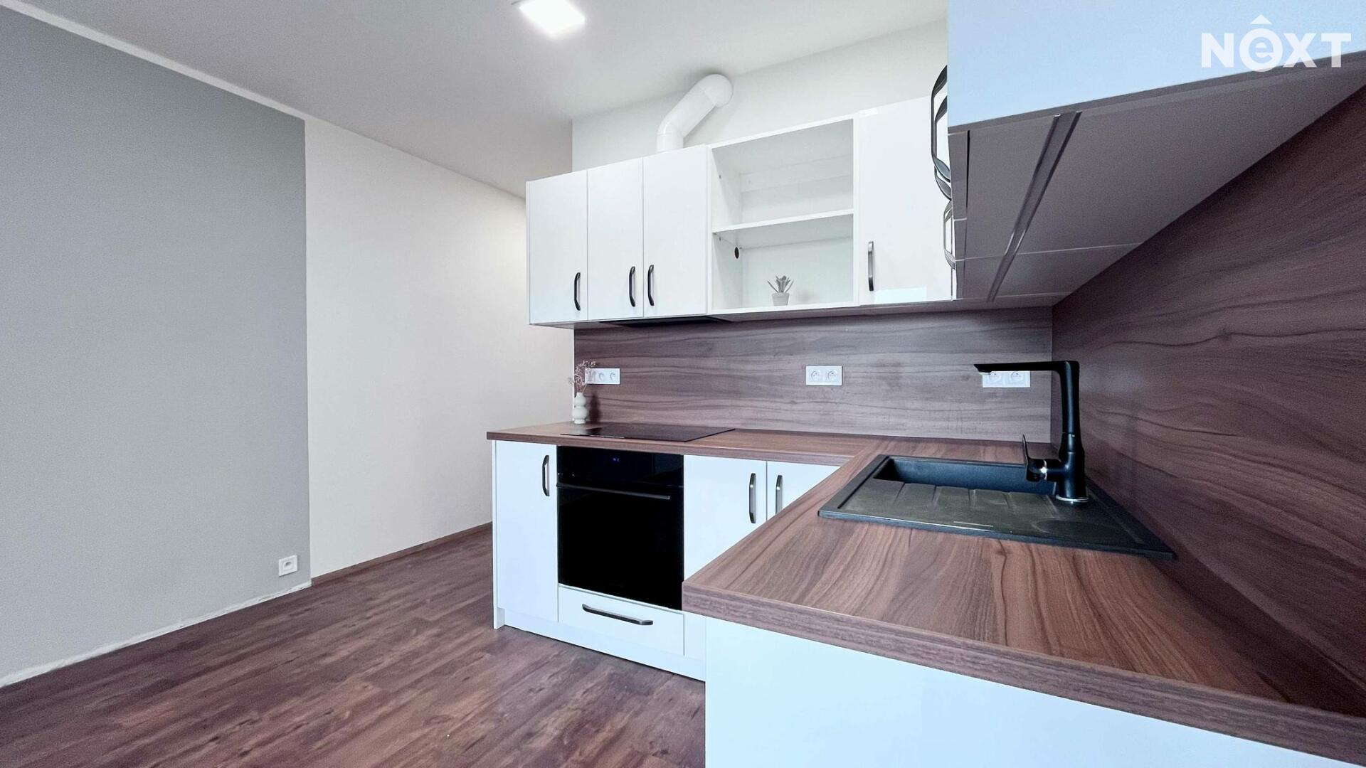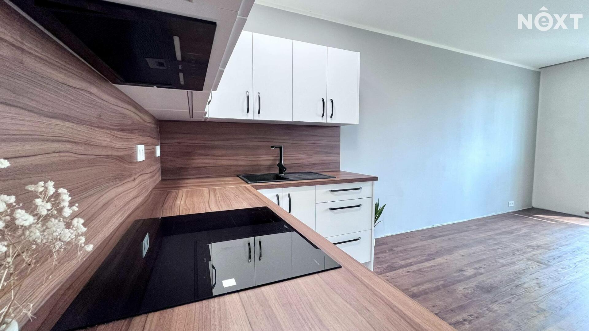 Byt prošel vkusnou rekonstrukcí a nabízí světlý a prakticky řešený obytný prostor. Hlavní pokoj je propojen s kuchyňským koutem, který je vybaven indukční varnou deskou a horkovzdušnou troubou.