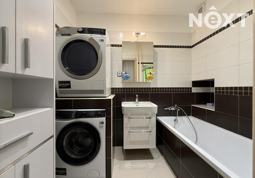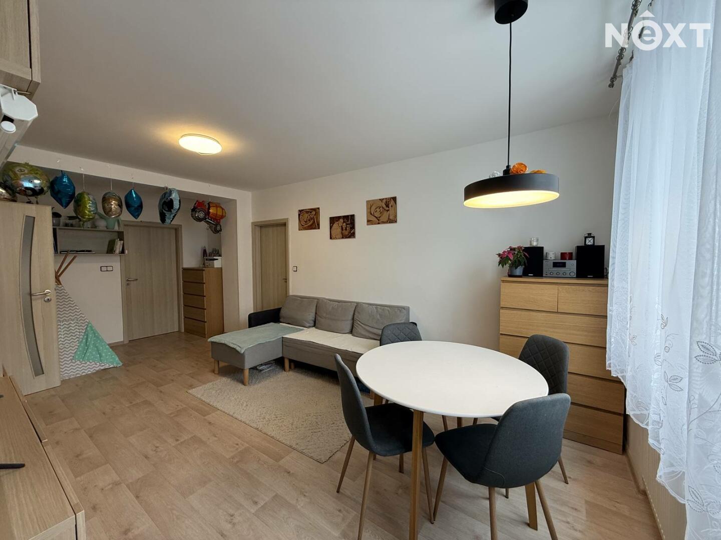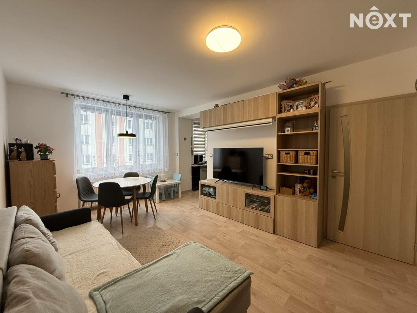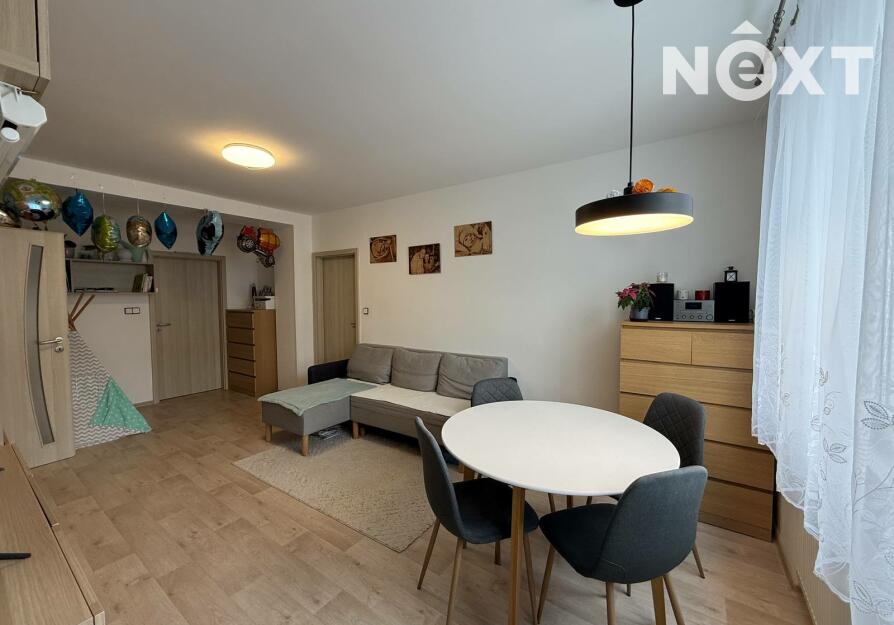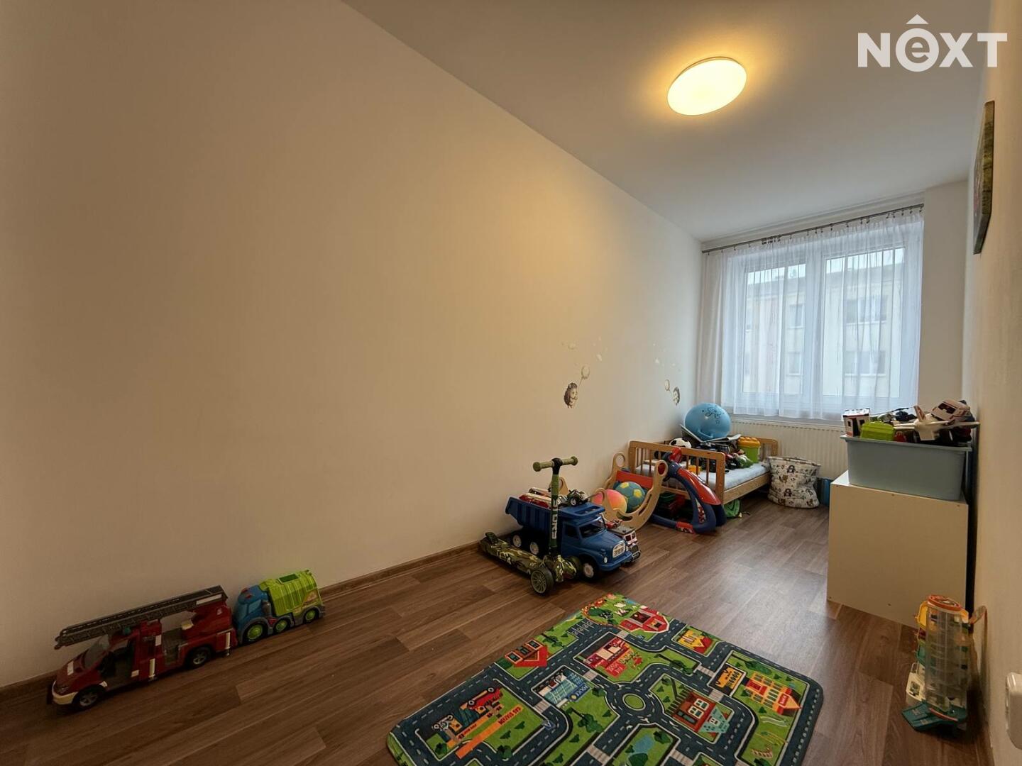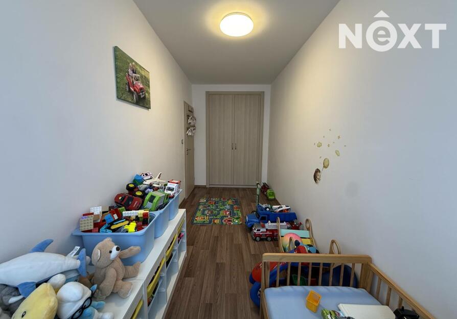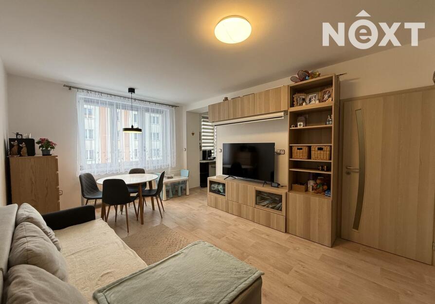 Dispozice: vstupní chodba s vestavěnou skříní, obývací pokoj s kuchyňským koutem (lednice, myčka, elektro sporák, trouba), 2 samostatné pokoje (ložnice, dětský pokoj), koupelna s vanou a prostorem na pračku i sušičku a samostatné wc.