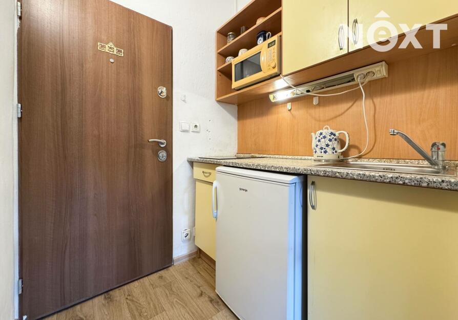 Dispozici bytu tvoří vstupní chodba s kuchyňským koutem, ze které je vstup do koupelny se sprchovým koutem a toaletou, a dále obytný pokoj, který slouží jako hlavní denní i noční prostor. Byt prošel v minulosti rekonstrukcí a nabízí příjemné, funkční prostředí.