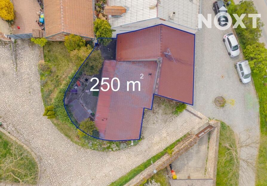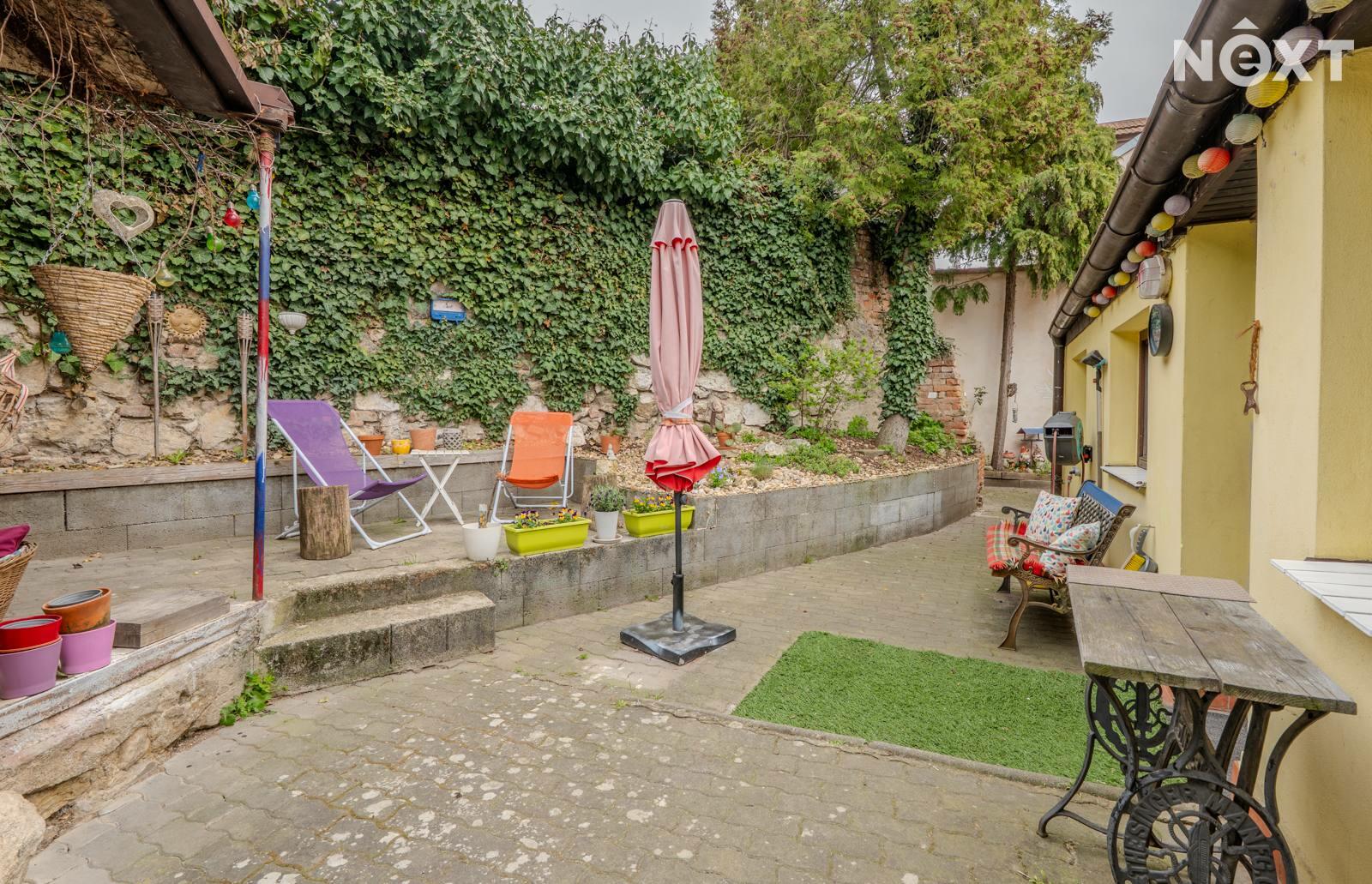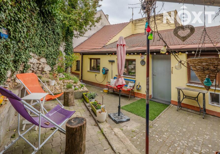 Dům je rohový, přízemní s vinným sklepem a menším udržovaným dvorem, který nabízí dostatek soukromí a možnost posezení a relaxace.