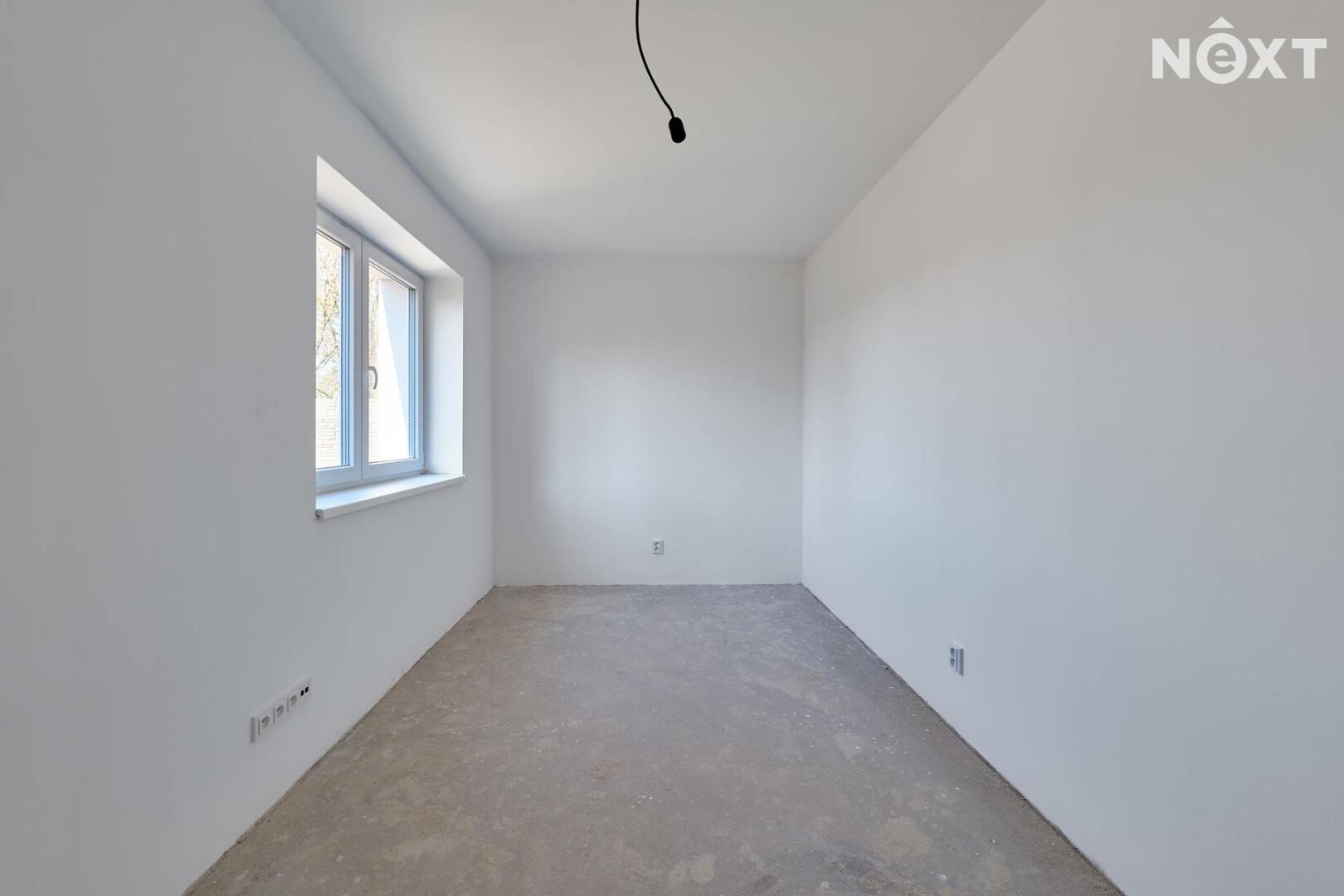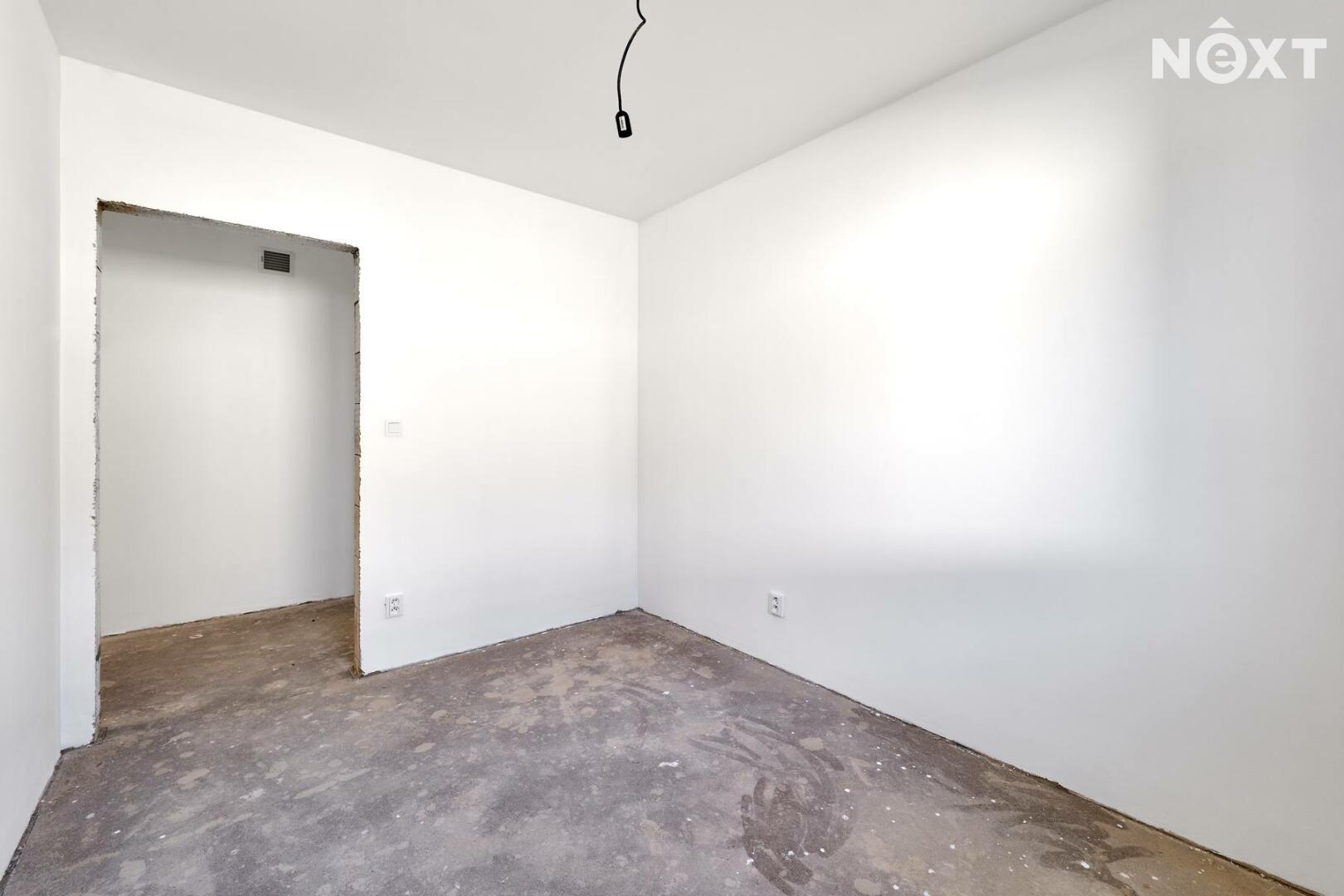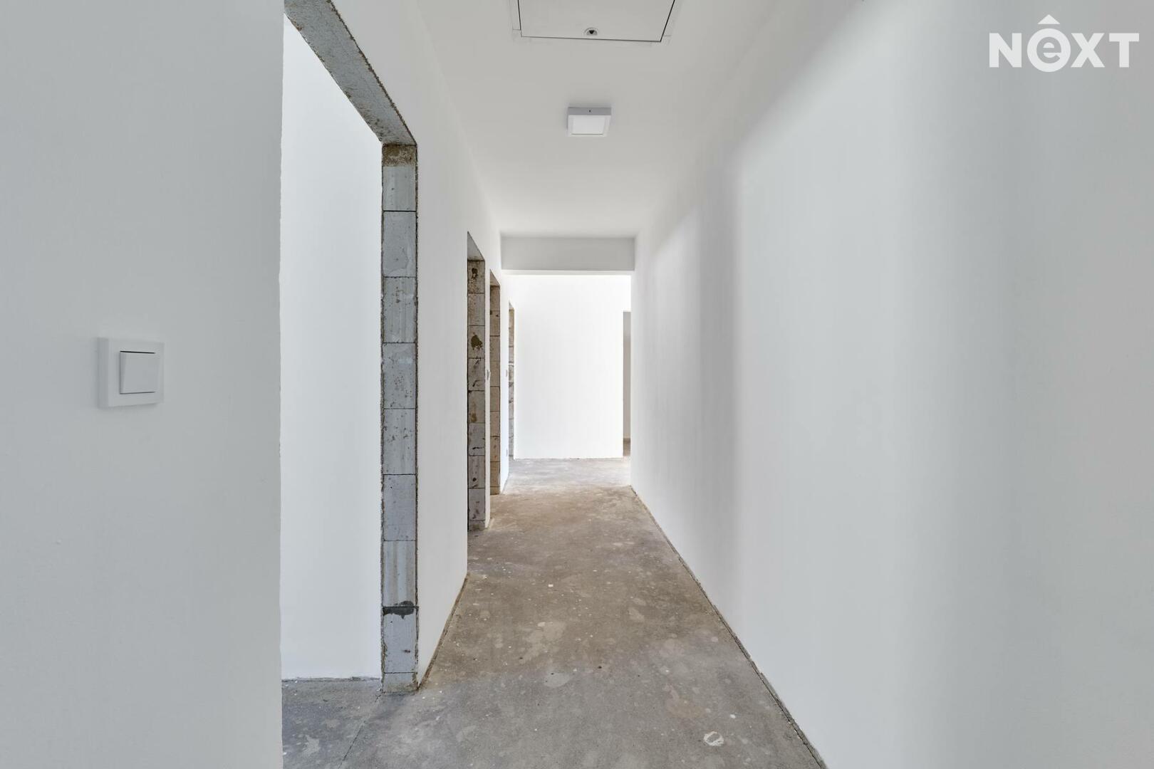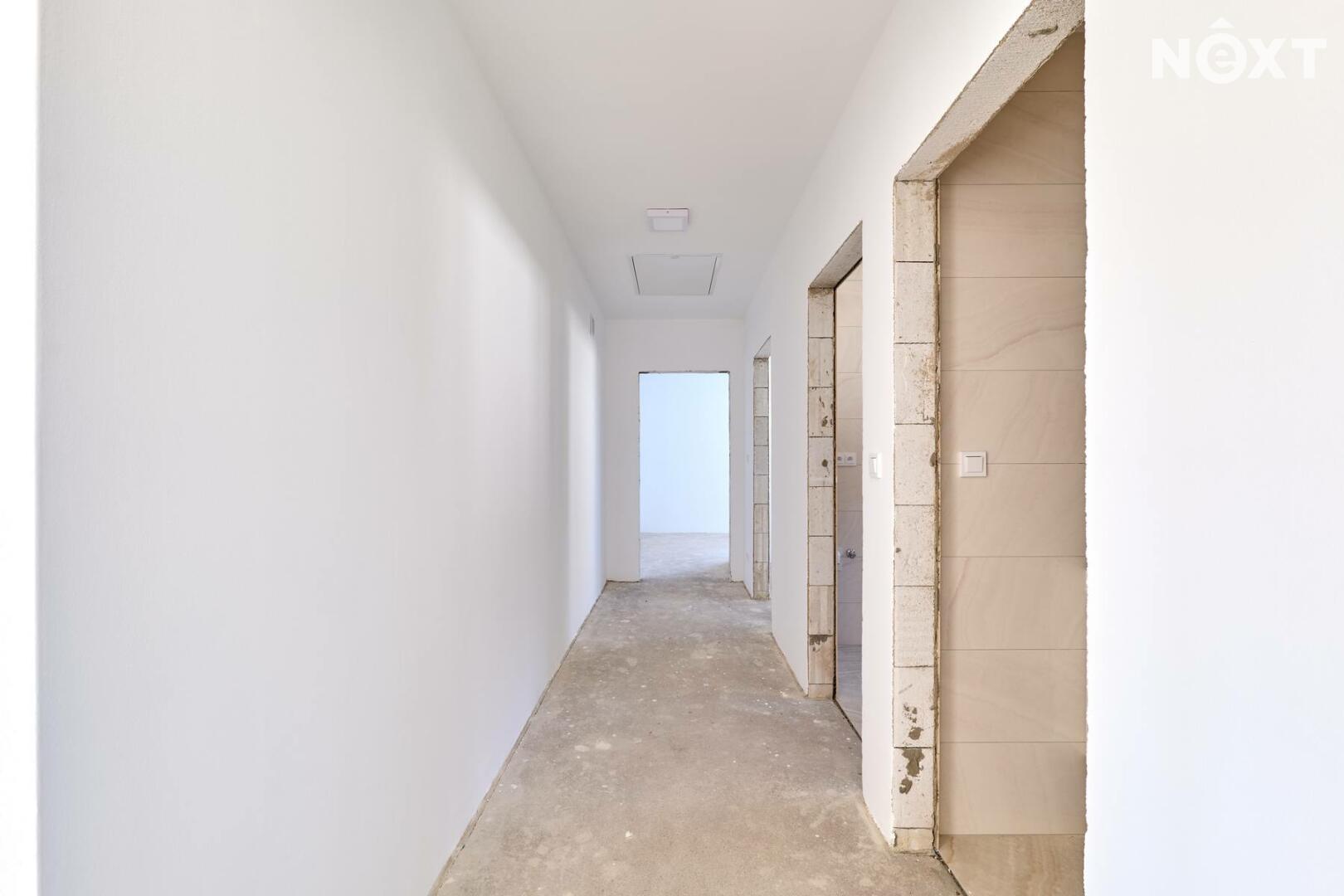 Interiér je ve fázi dokončení, což umožňuje budoucímu majiteli přizpůsobit finální podobu dle vlastních představ. Podlahy v obytných místnostech mohou být z vinylu či dlažby dle výběru (je započteno v ceně a bude dokončeno před podpisem kupní smlouvy), kuchyňská linka není součástí a lze ji realizovat individuálně. Koupelna a WC jsou již obloženy keramickými obklady a částečně vybaveny.