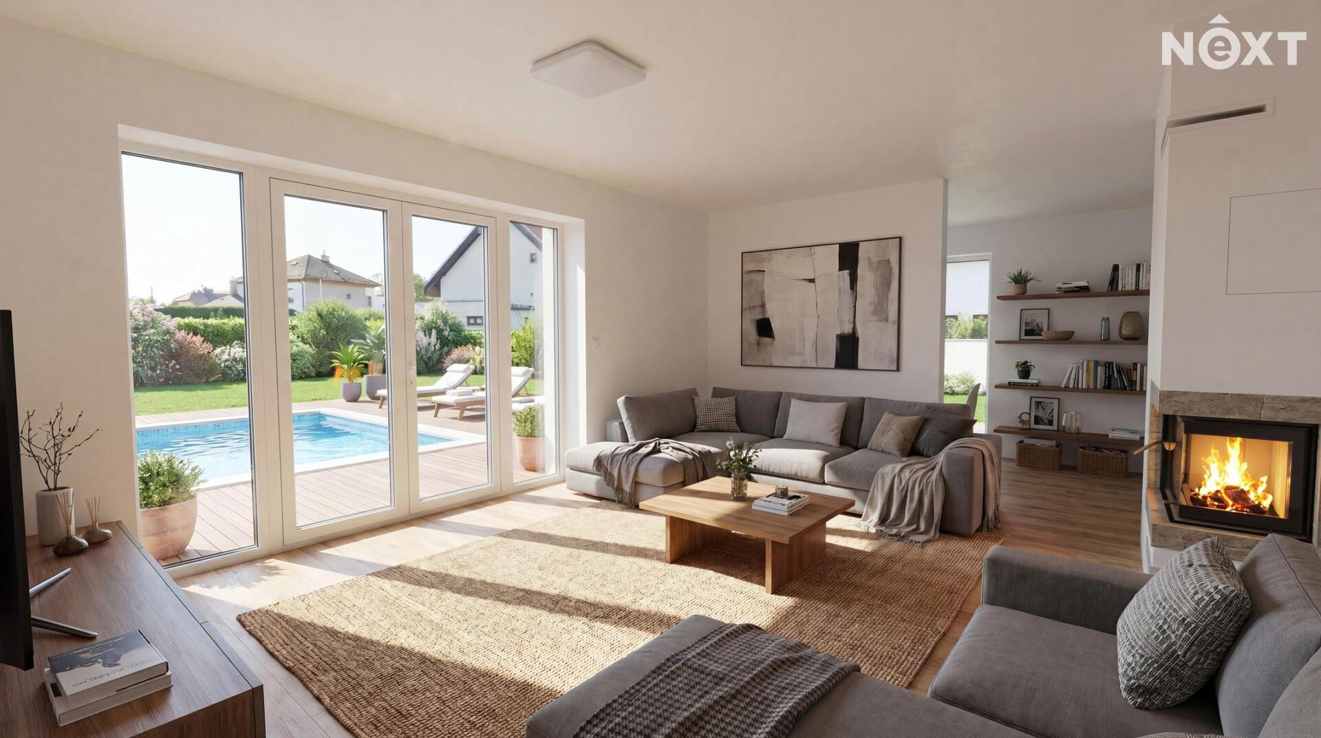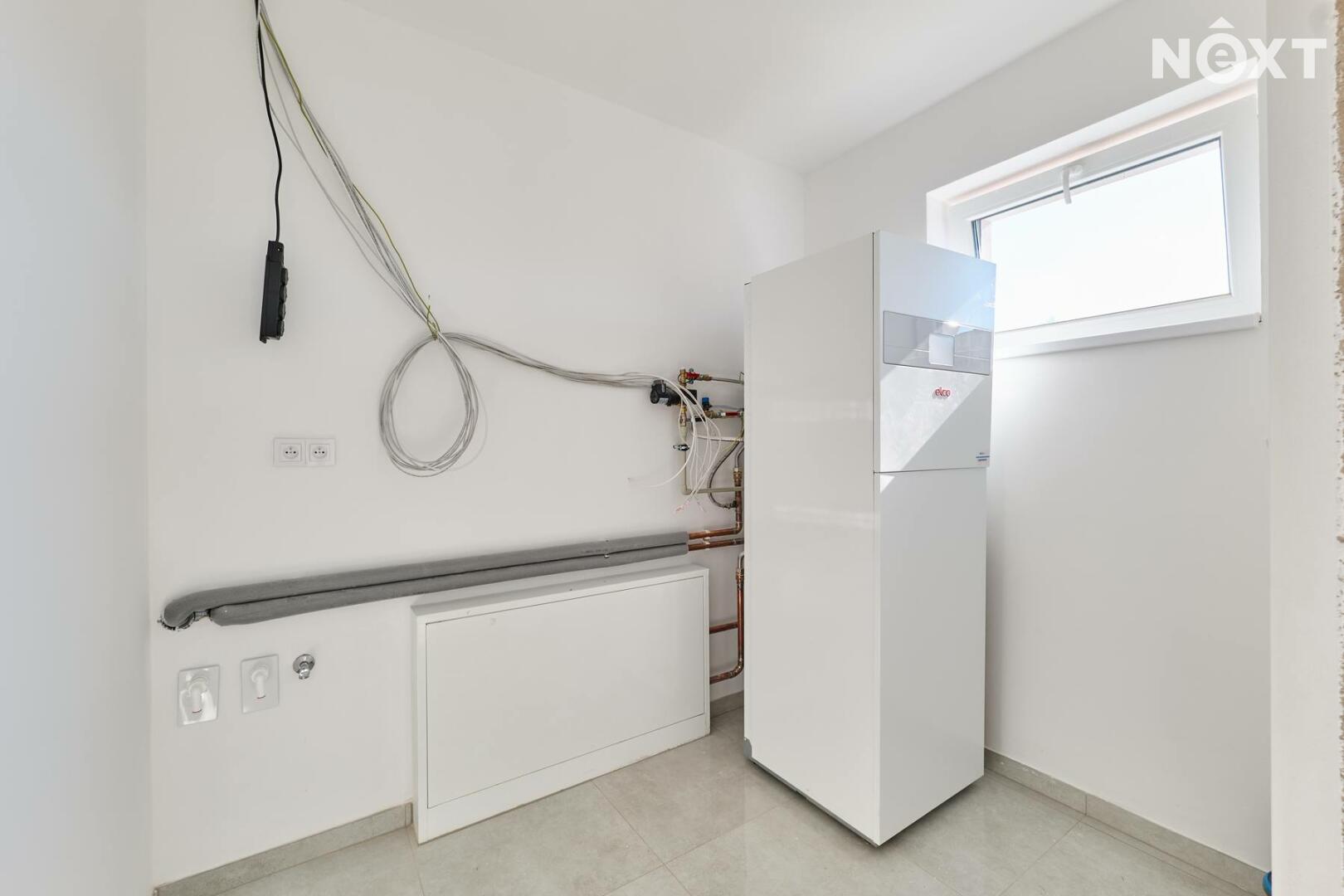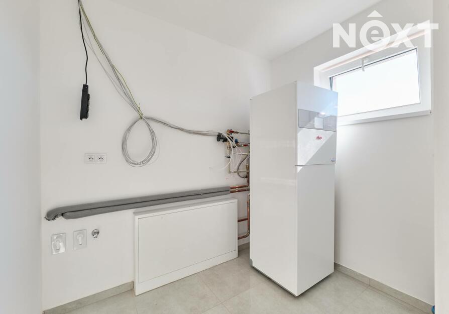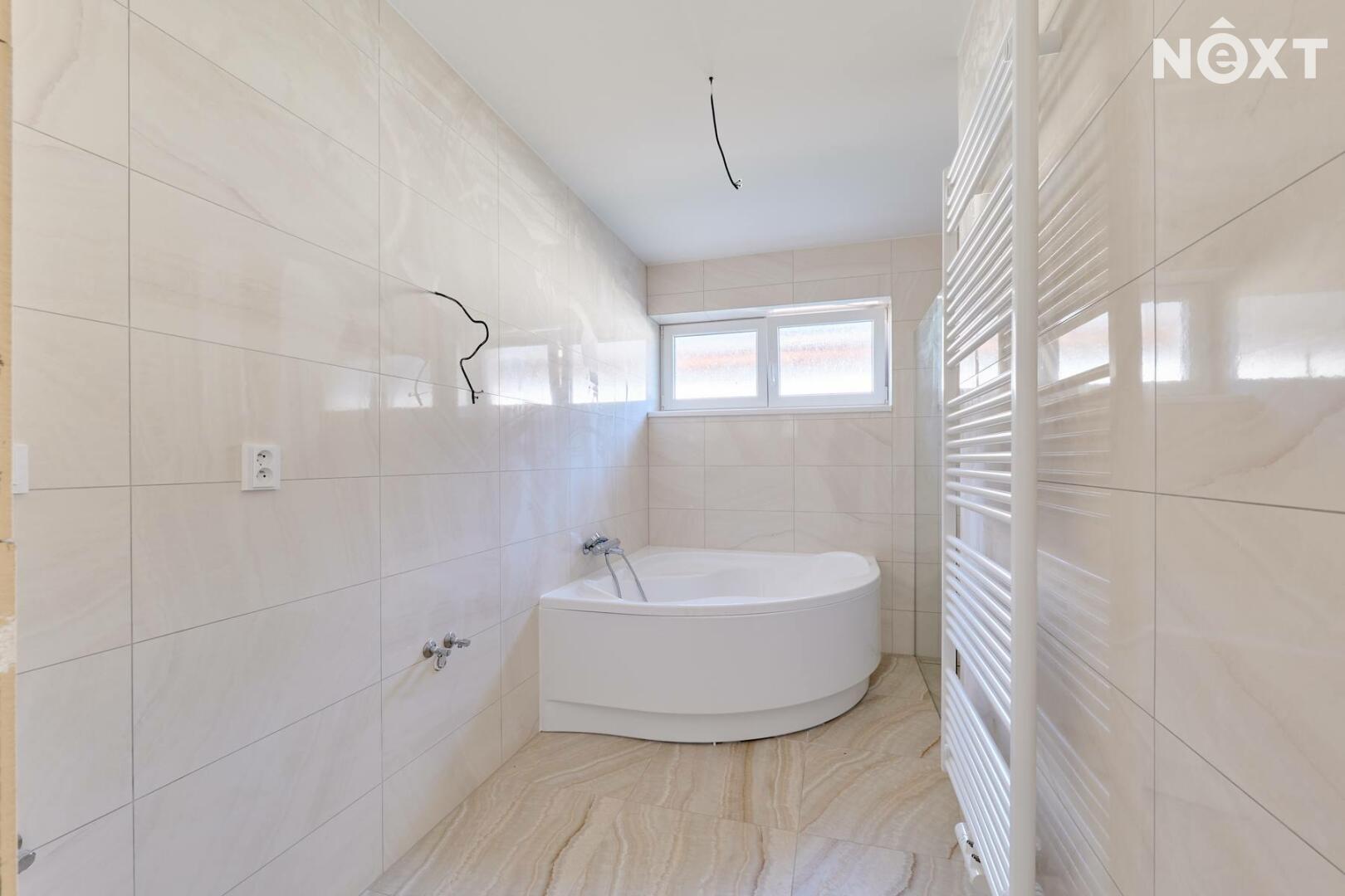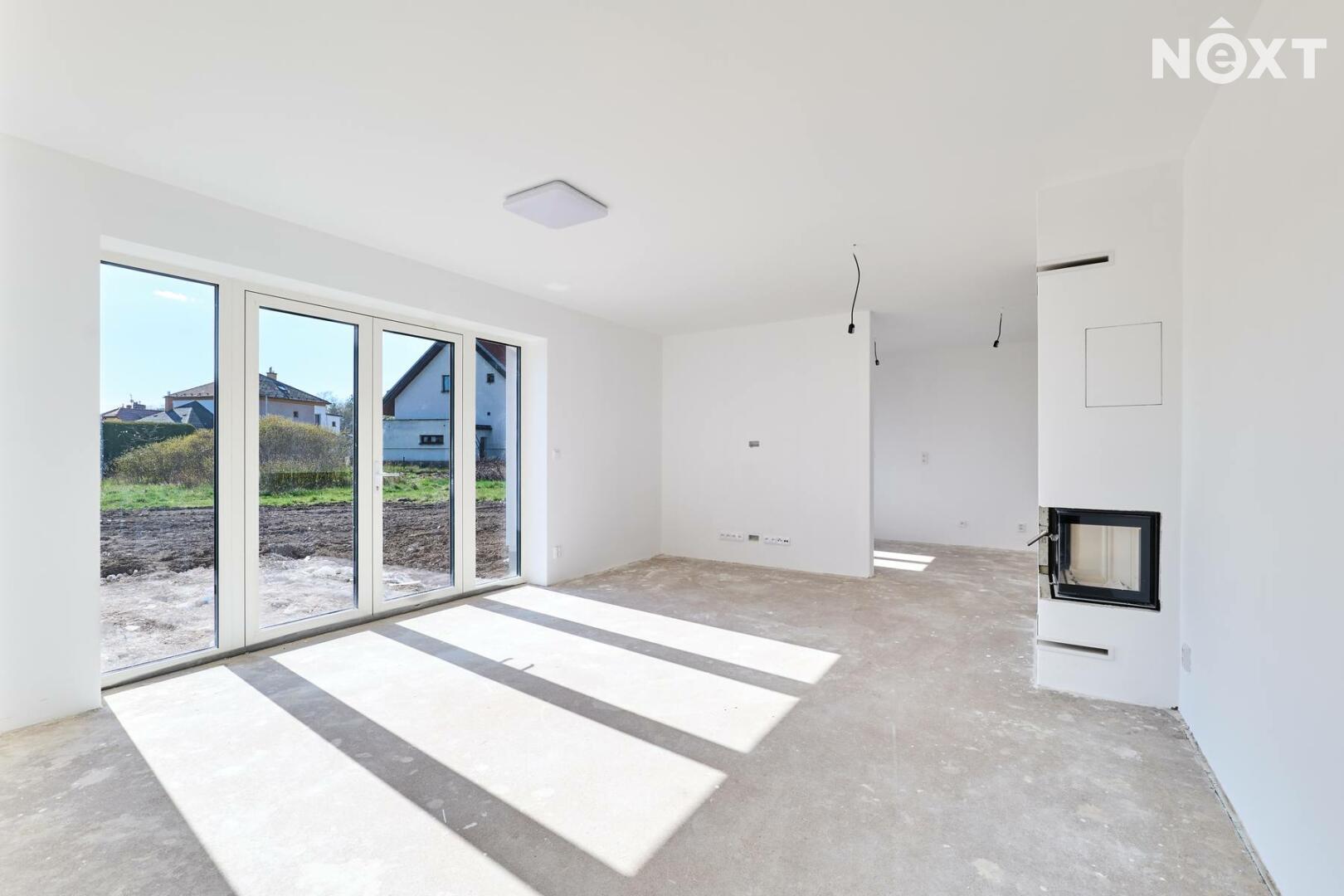 Interiér je ve fázi dokončení, což umožňuje budoucímu majiteli přizpůsobit finální podobu dle vlastních představ. Podlahy v obytných místnostech mohou být z vinylu či dlažby dle výběru (je započteno v ceně a bude dokončeno před podpisem kupní smlouvy), kuchyňská linka není součástí a lze ji realizovat individuálně. Koupelna a WC jsou již obloženy keramickými obklady a částečně vybaveny.