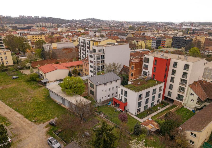Byt se nachází v přízemí menšího bytového domu, který je umístěný ve vnitrobloku. Přístup k němu je veden přes přední dům, díky čemuž je bydlení příjemně oddělené od ruchu ulice. Samotný dům má pouze tři bytové jednotky, což zajišťuje klidné prostředí, dostatek soukromí a příjemnou, téměř rodinnou atmosféru.