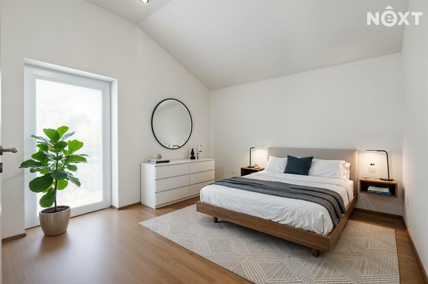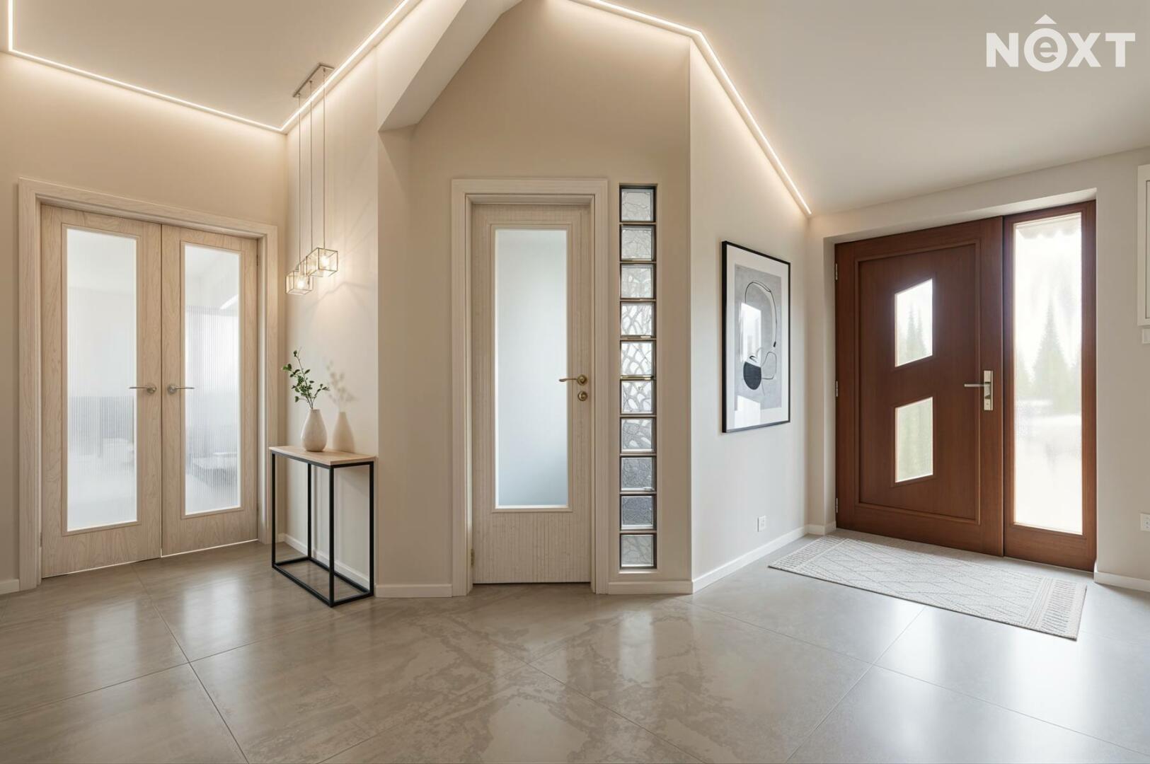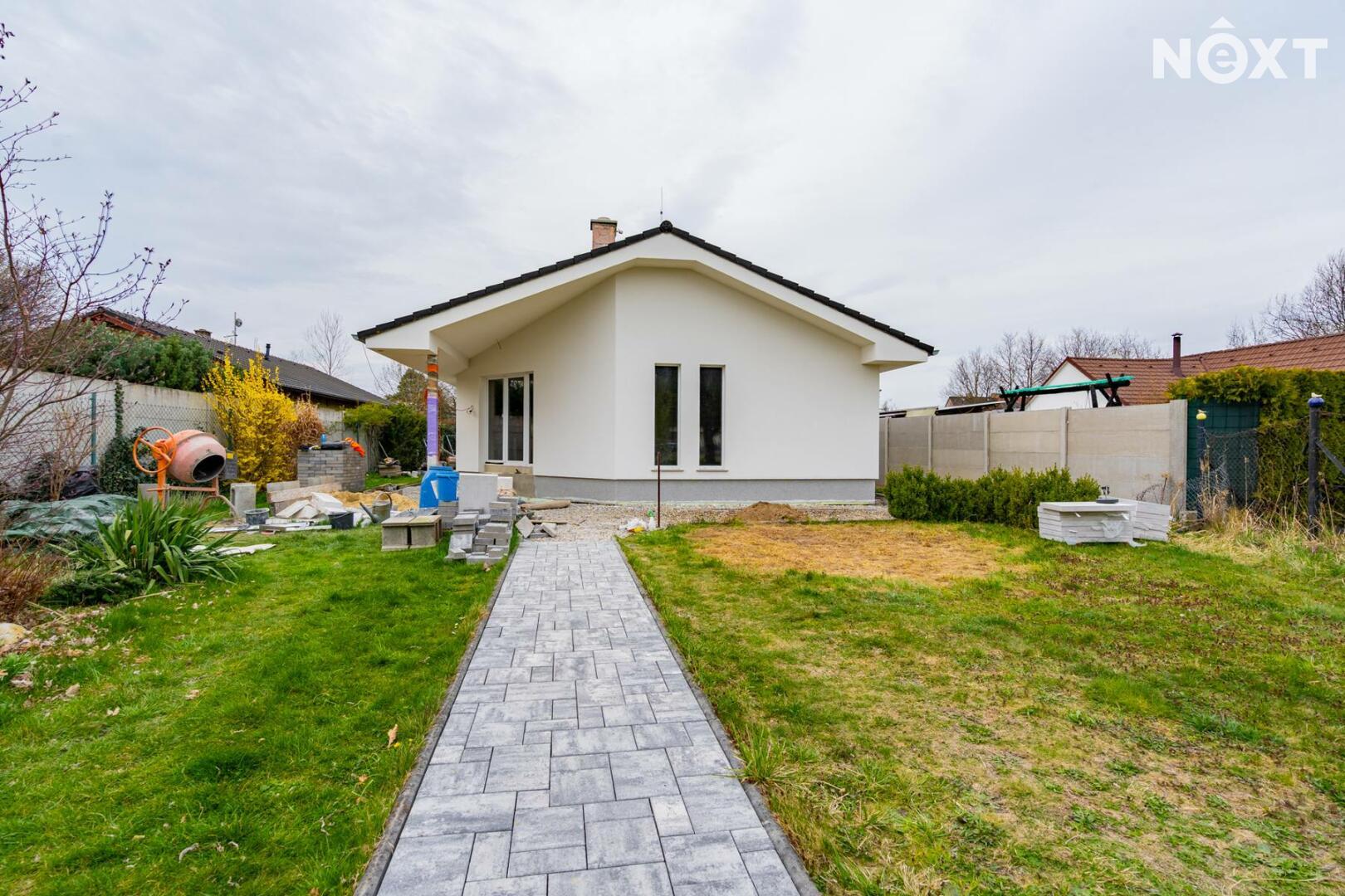 Dům je řešen jako přízemní s důrazem na praktičnost a pohodlí každodenního života. Dispozice 4+kk nabízí přehledné a funkční uspořádání – obývací pokoj s kuchyňským koutem tvoří přirozené srdce domu, odkud je přímý kontakt se zahradou. Velkoformátová okna zajišťují dostatek denního světla po celý den a podtrhují příjemnou, vzdušnou atmosféru interiéru. Dům působí velmi útulně a zároveň moderně, s důrazem na efektivní využití prostoru.