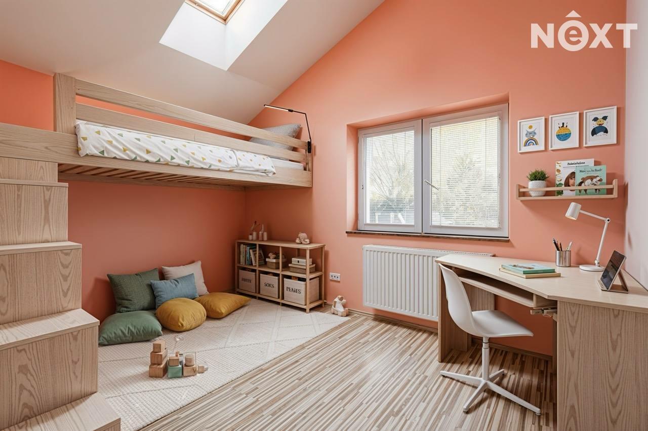 Součástí jsou tři samostatné pokoje, které lze využít jako ložnici, dětské pokoje či pracovnu. Nechybí koupelna, samostatné WC a technické zázemí. Celkové řešení domu ocení zejména rodiny hledající komfortní bydlení bez zbytečně nevyužitých ploch.