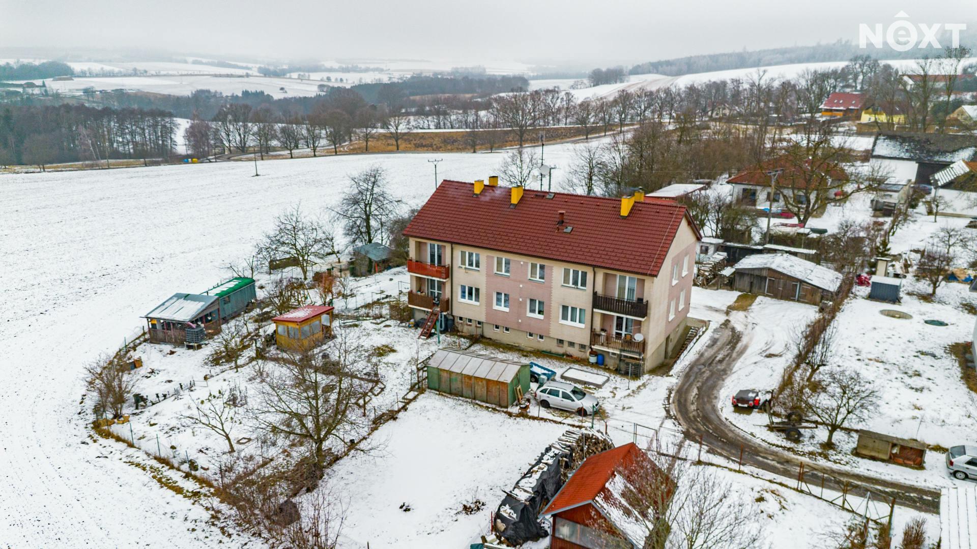 Hledáte nenáročné bydlení v bytě, přitom ale s výhodami rodinného domu jako je zahrada, garáž, dílna apod.? Nabízíme k pronájmu velmi příjemný byt 3+kk po kompletní rekonstrukci, který se nachází ve 2. patře menšího bytového domu se šesti bytovými jednotkami v obci Dědice u Nemyšle, na klidném okraji obce. Lokalita nabízí ideální kombinaci bydlení na vesnici s výbornou dostupností města – město Tábor je vzdáleno přibližně 12 km a nájezd na dálnici D3 je dostupný během několika minut, což zajišťuje pohodlné spojení směrem na Prahu i České Budějovice.