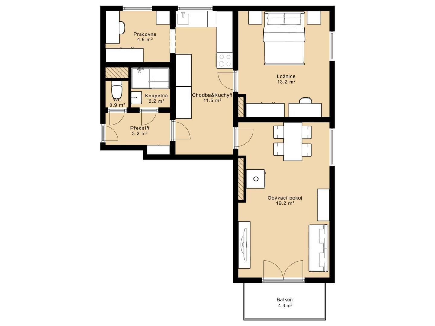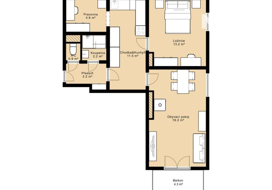 Byt 3+kk nabízí výměru 59 m² s balkonem a plus prostorné sklepy o celkové ploše cca 20 m². Díky tomu je k dispozici nadstandardní množství úložného prostoru, které u bytů této velikosti není běžné. Bytový dům má pitnou vodu z vlastního vrtu. Ohřev TUV je moderním el. bojlerem. Celková měsíční platba činí 15.000,- (13.500 nájemné, 1.500,- záloha na služby). Služby: elektřina společných prostor, provoz vrtu na pitnou vodu,... Ekeltřinu si nájemník přehlásí na sebe (obvyklá záloha 1.500,-). Majitelé požadují vratnou kauci ve výši 27.000,-. Hradí se rezervační poplatek - provize RK 15.000,- Byt je pronajímán bez vybavení na fotkách. (zůstává pouze kuchyňská linka a krbová kamna). Majitelé upřednostňují nekuřáky a bez domácích mazlíčků. Pro komunikaci uvádějte evidenční číslo zakázky N117476.