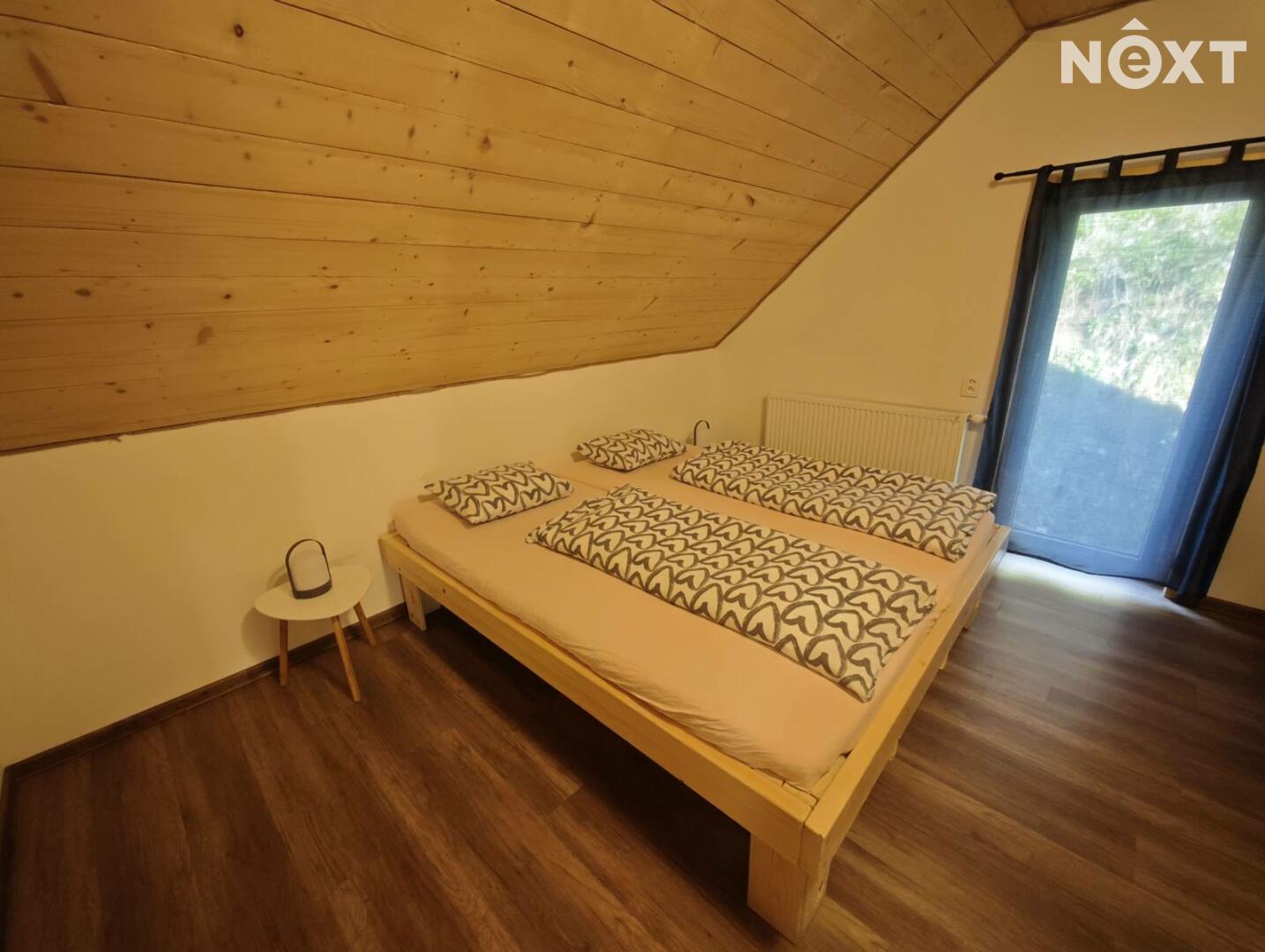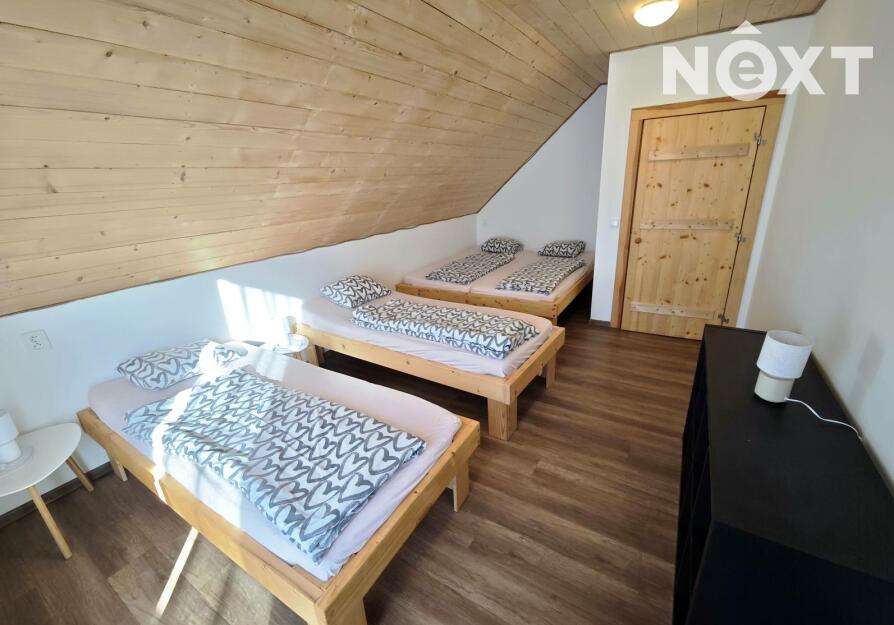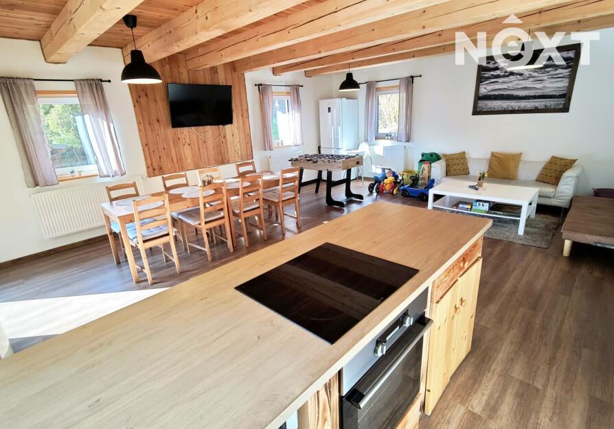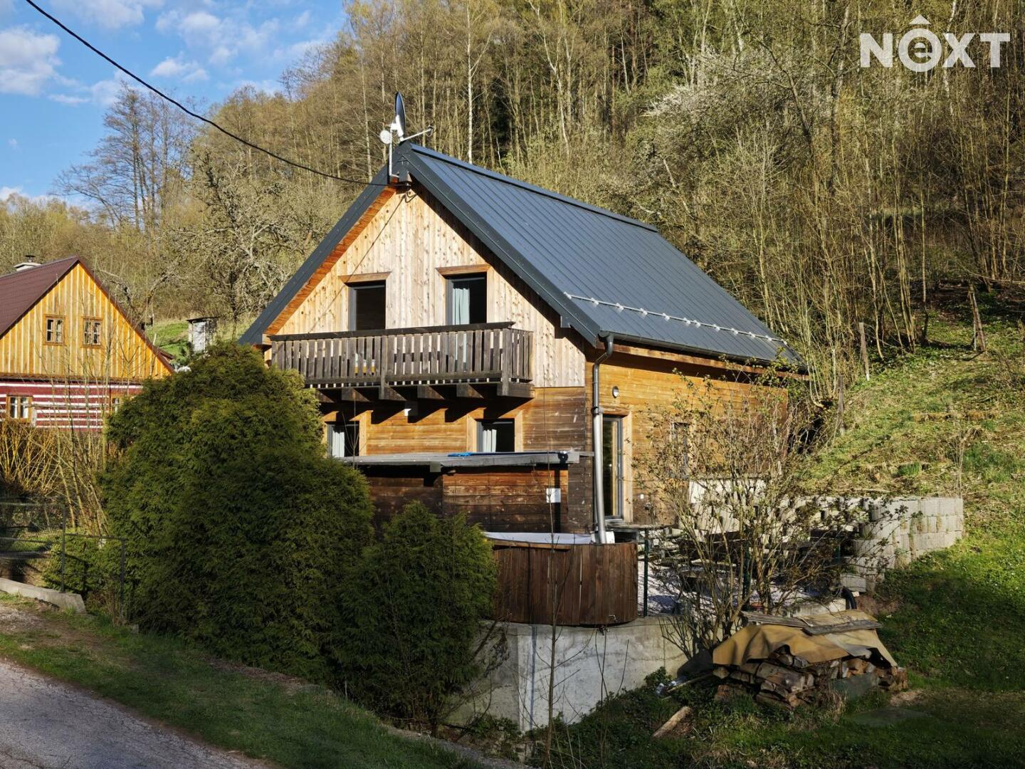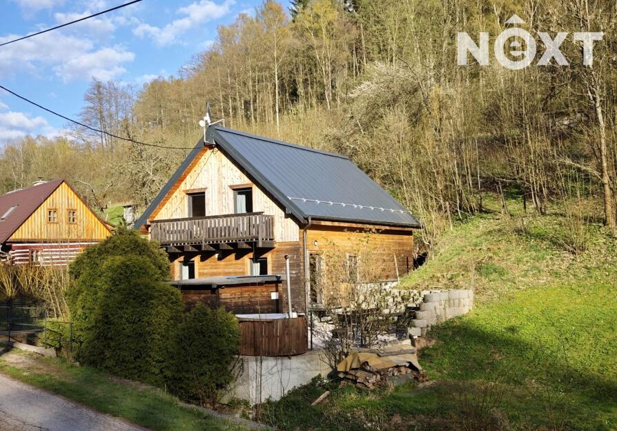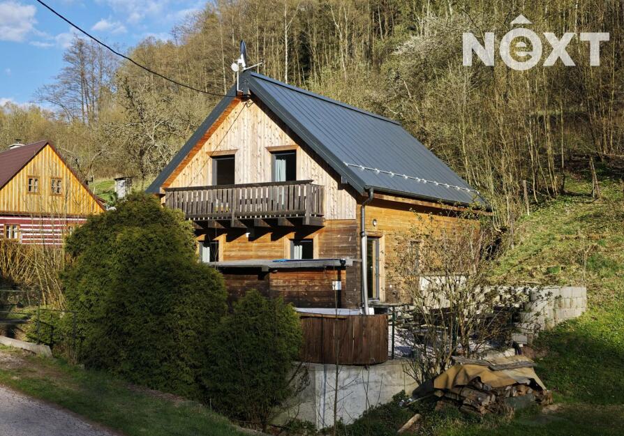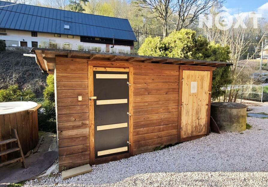 Nabízíme k prodeji dům pro rodinou rekreaci s přiděleným číslem evidenčním. Objekt je tak možno užívat i k trvalému celoročnímu bydlení. Konstrukce domu je rámová dřevostavba o dvou nadzemních podlažích. Dispozice 4+KK. V přízemí se nachází vstupní chodba, obývací pokoj s výstupem na venkovní terasu, kuchyňský a jídelní kout (kuchyňská linka s varnou deskou, elektrickou pečící troubou), koupelna (2x sprchový kout, umyvadlo), samostatné WC, schodiště do druhého nadzemního podlaží (obytné podkroví). V obytném podkroví se nachází 3 ložnice, balkón, samostatné WC s umyvadlem. K domu náleží finská sauna, koupací sud (s možností vytápění dřevem), venkovní posezení a dřevník. Vytápění je centrální prostřednictvím elektrokotle a rozvodu radiátorů. Ohřev vody bojlerem. Střecha sedlová, s krytinou z hliníkového plechu. Menší pozemek kolem domu je vysypaný světlým štěrkem. U domu se nachází kopaná studna s užitkovou vodou. Příprava na napojení do domu pro případ využívání např. ke splachování na WC. Lhota u Trutnova, kde dům stojí, je součástí obce Trutnov. Nachází se pod hřebenem Jestřebích hor. V bezprostředním okolí se nachází síť trailových stezek Trutnov Trails. Dům je 6 km od SKI areálu Petříkovice, 26 km od ZOO Safari Parku ve Dvoře Králové nad Labem, 18 km od Adršpašsko-teplických skal a 6 km od centra Trutnova, kde je veškerá občanská vybavenost. V případě koupě formou hypotečního úvěru tento zajistíme. Doporučujeme prohlídku. Pro komunikaci uvádějte evidenční číslo zakázky N117481.