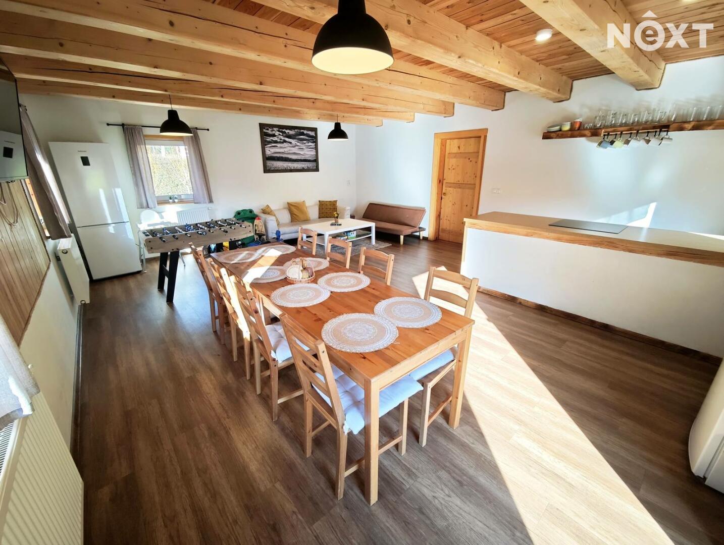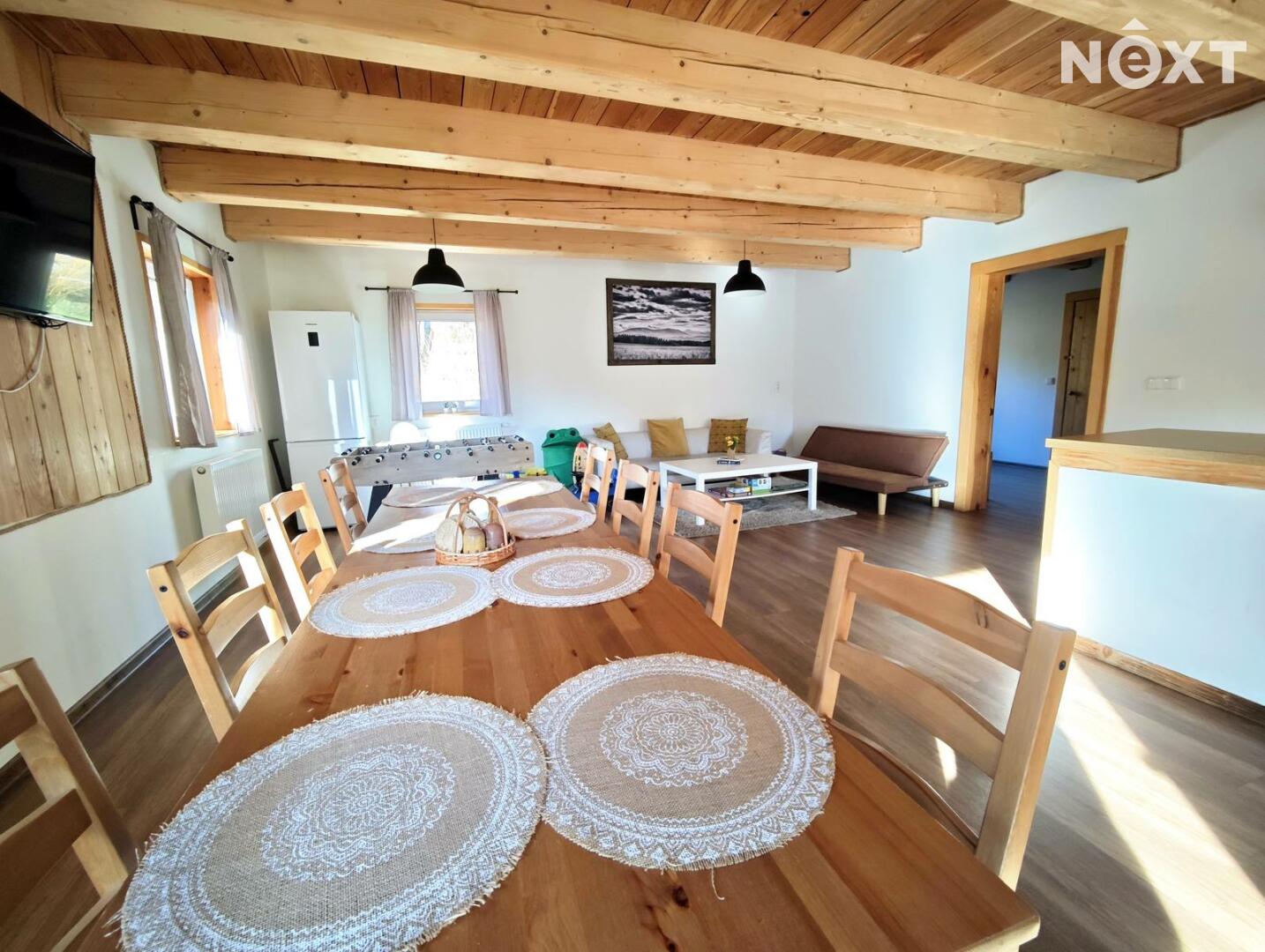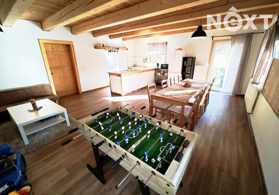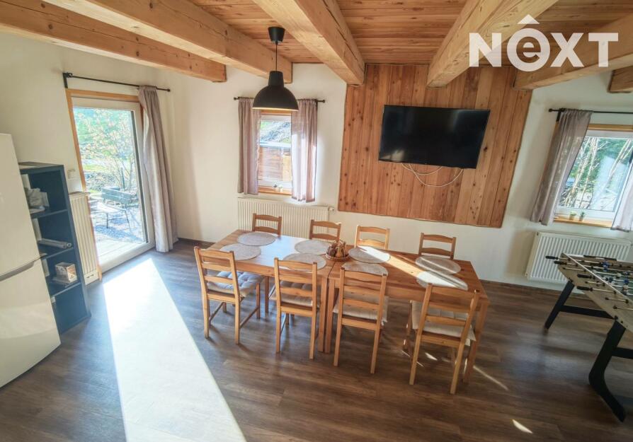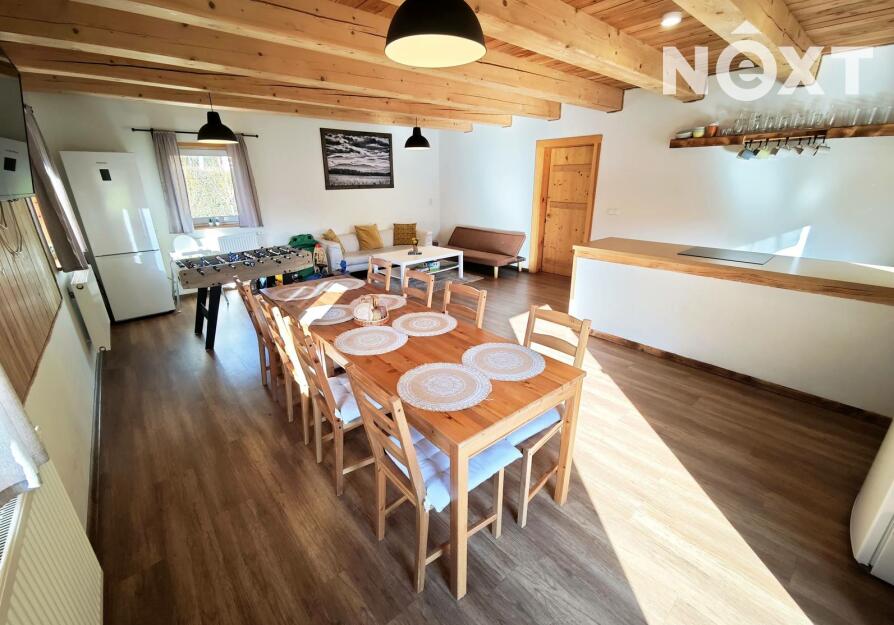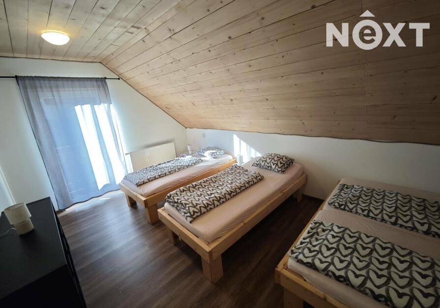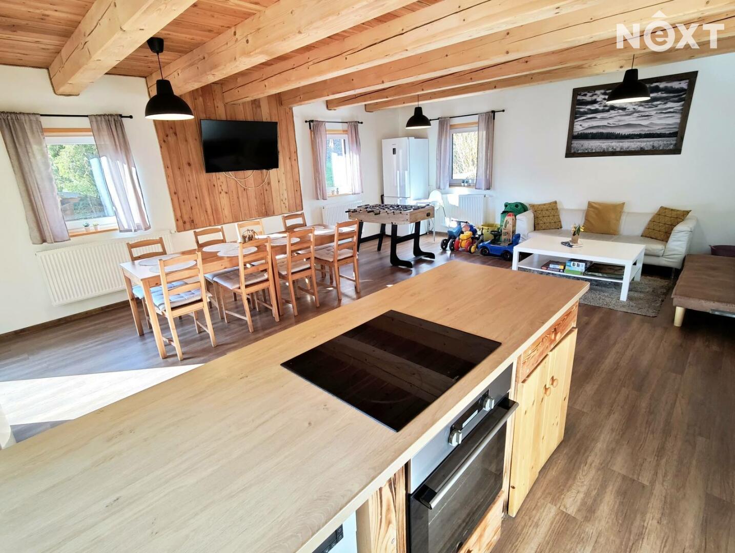 Nabízíme k prodeji dům pro rodinou rekreaci s přiděleným číslem evidenčním. Objekt je tak možno užívat i k trvalému celoročnímu bydlení. Konstrukce domu je rámová dřevostavba o dvou nadzemních podlažích. Dispozice 4+KK. V přízemí se nachází vstupní chodba, obývací pokoj s výstupem na venkovní terasu, kuchyňský a jídelní kout (kuchyňská linka s varnou deskou, elektrickou pečící troubou), koupelna (2x sprchový kout, umyvadlo), samostatné WC, schodiště do druhého nadzemního podlaží (obytné podkroví). V obytném podkroví se nachází 3 ložnice, balkón, samostatné WC s umyvadlem. K domu náleží finská sauna, koupací sud (s možností vytápění dřevem), venkovní posezení a dřevník. Vytápění je centrální prostřednictvím elektrokotle a rozvodu radiátorů. Ohřev vody bojlerem. Střecha sedlová, s krytinou z hliníkového plechu. Menší pozemek kolem domu je vysypaný světlým štěrkem. U domu se nachází kopaná studna s užitkovou vodou. Příprava na napojení do domu pro případ využívání např. ke splachování na WC. Lhota u Trutnova, kde dům stojí, je součástí obce Trutnov. Nachází se pod hřebenem Jestřebích hor. V bezprostředním okolí se nachází síť trailových stezek Trutnov Trails. Dům je 6 km od SKI areálu Petříkovice, 26 km od ZOO Safari Parku ve Dvoře Králové nad Labem, 18 km od Adršpašsko-teplických skal a 6 km od centra Trutnova, kde je veškerá občanská vybavenost. V případě koupě formou hypotečního úvěru tento zajistíme. Doporučujeme prohlídku. Pro komunikaci uvádějte evidenční číslo zakázky N117481.