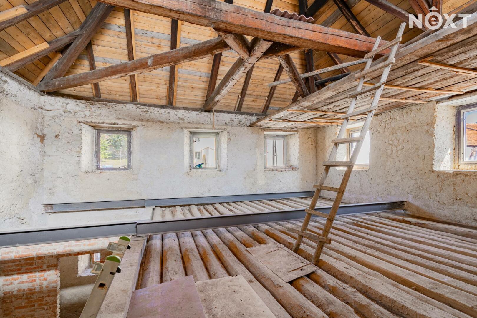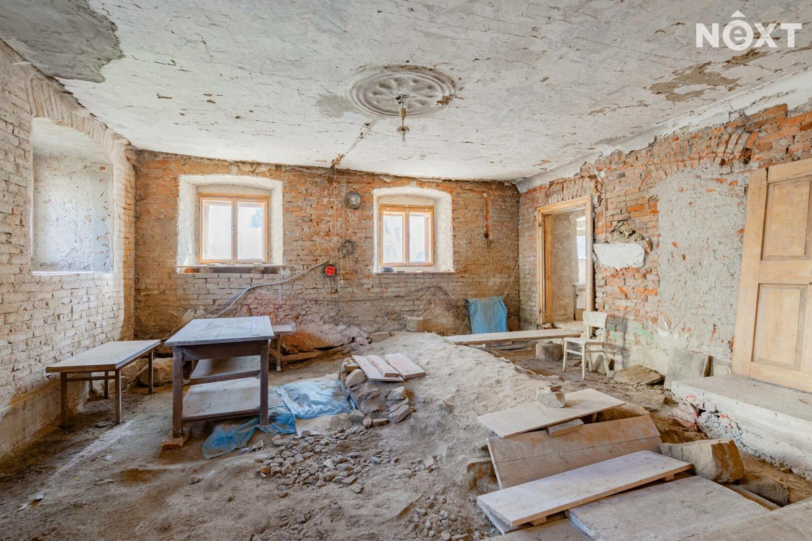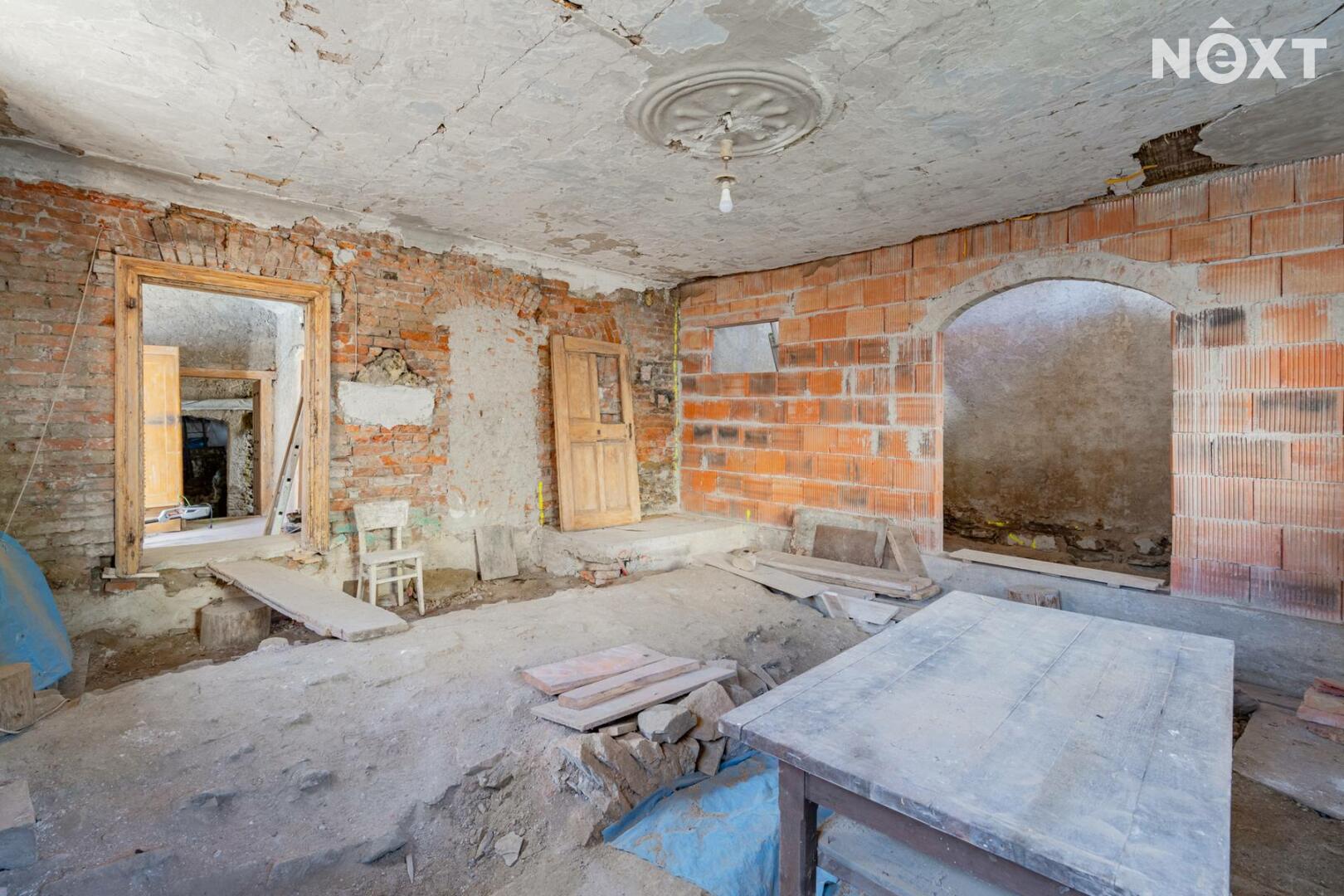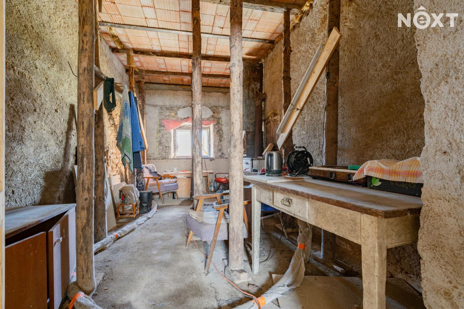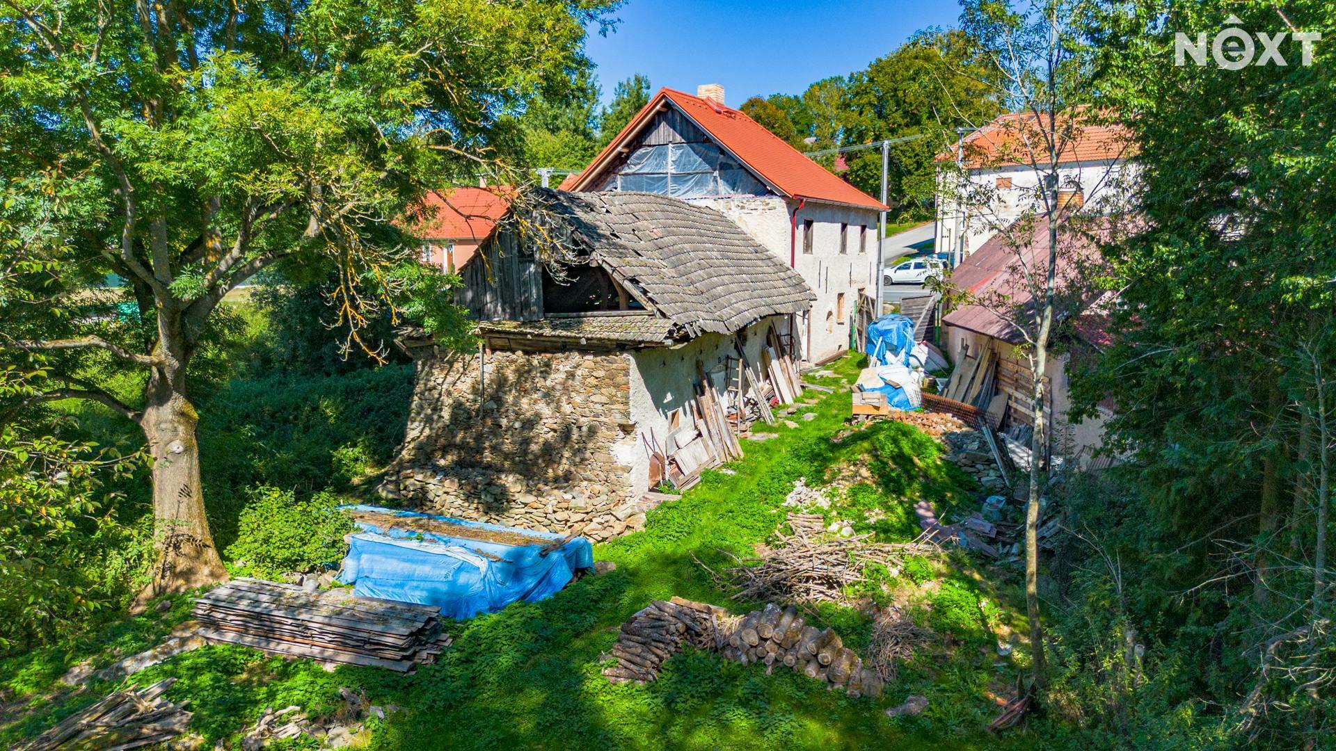 Na domě proběhla většina bouracích a přípravných prací. Dům nabízí výjimečný potenciál – lze dotvořit obytné plochy, pracovat s otevřenými krovy, vybudovat terasu nad stodolou a prostor využít pro rodinné bydlení, rekreaci či kombinaci s ateliérem/dílnou.
