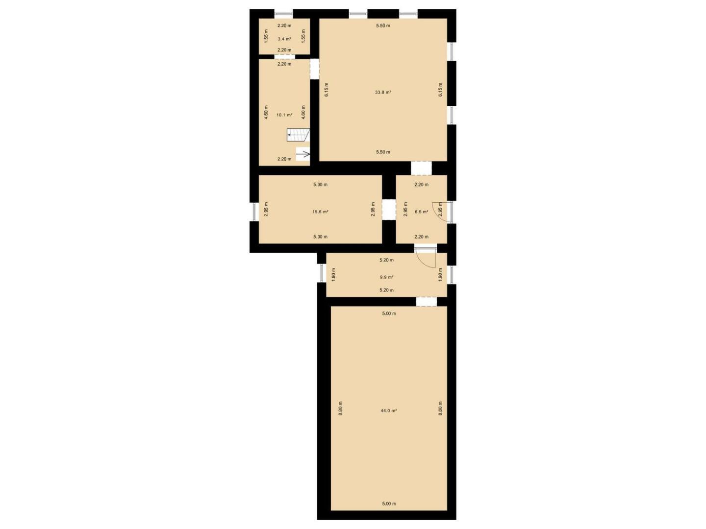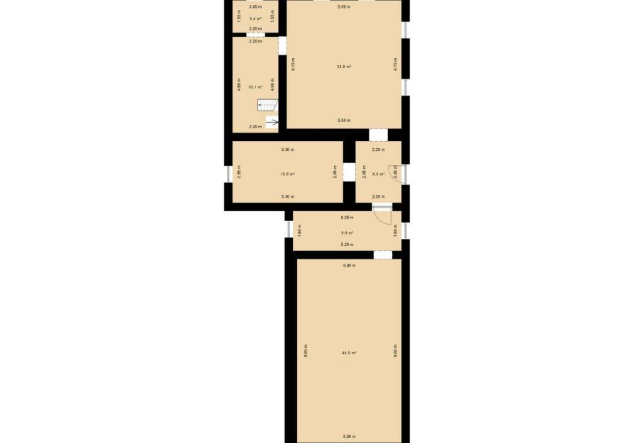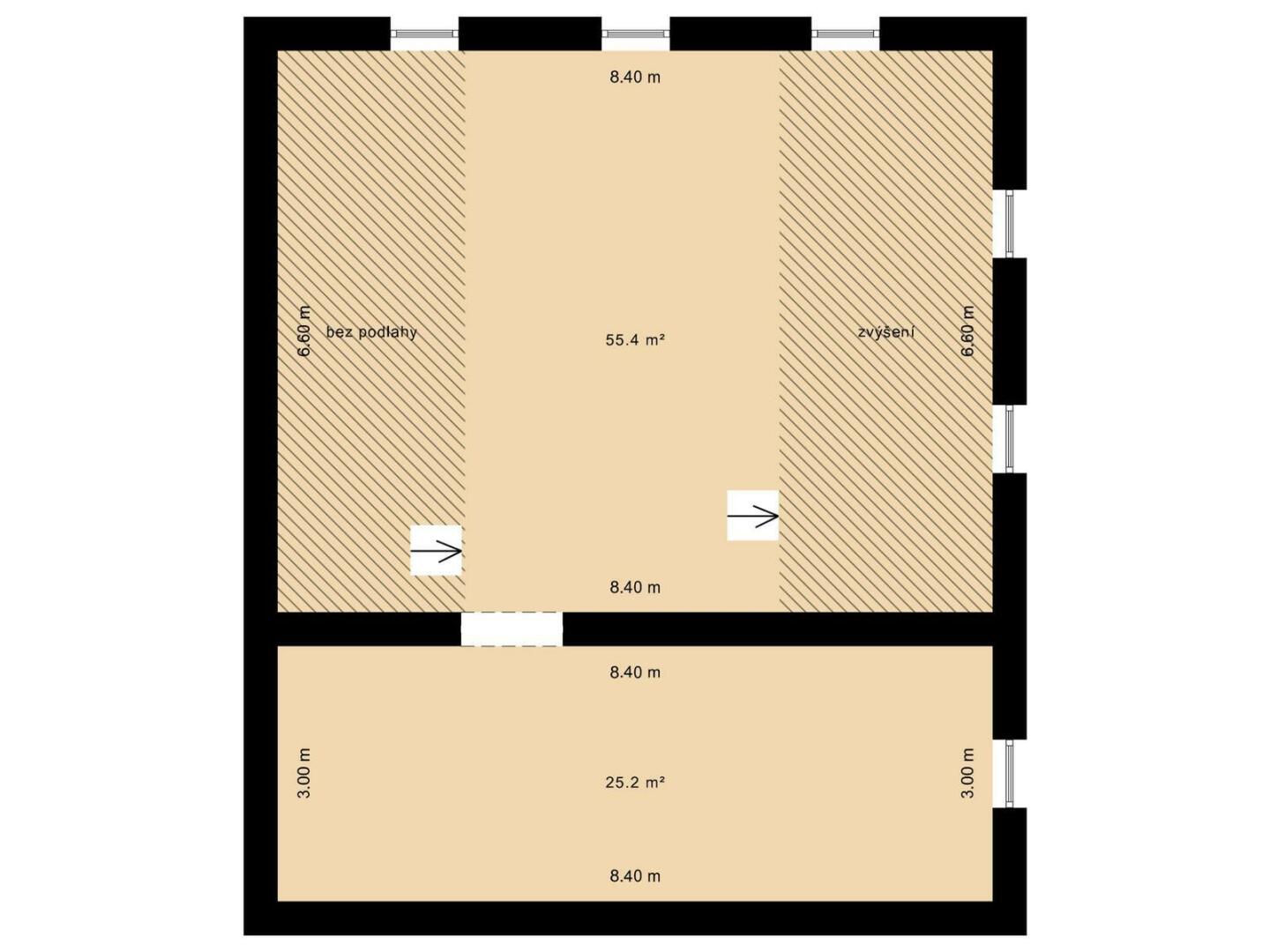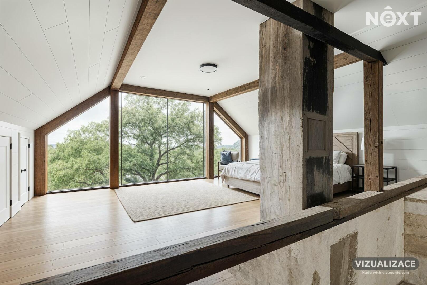 - Stodola: cca 44 m² (původně plánovaná velká terasa nad stodolou)