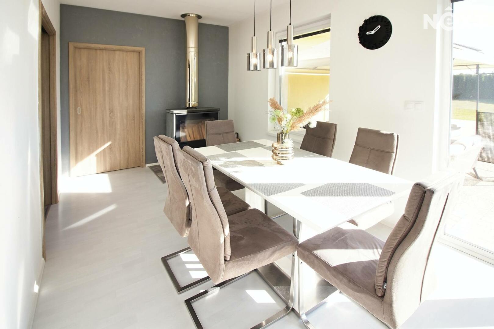 Dominantou domu je světlý a otevřený obytný prostor, který přirozeně propojuje: