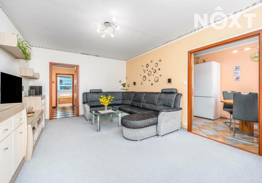 Dominantou bytu je obývací část s rohovou sedačkou, která přirozeně zve ke společnému času – ať už večer u filmu, nebo při návštěvách. Kuchyně je řešená účelně do „U“, takže máte vše po ruce a dostatek pracovní plochy, což ocení každý, kdo vaří častěji než jen o víkendu. Ložnice působí klidně a nerušeně, ideální pro regeneraci, zatímco dětský pokoj nabízí dost místa na spaní, hraní i ukládání věcí – přesně tak, jak to rodinný život potřebuje. Koupelna je udržovaná a praktická, stejně jako vstupní hala s dostatkem úložného prostoru. Byt prošel rekonstrukcí před cca 13 lety, realizovanou majitelem s důrazem na kvalitu – a je to znát. Navíc byl minimálně užíván, takže působí stále velmi zachovale.