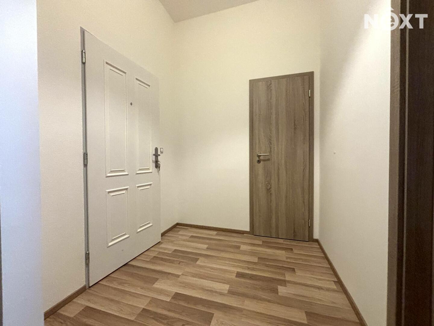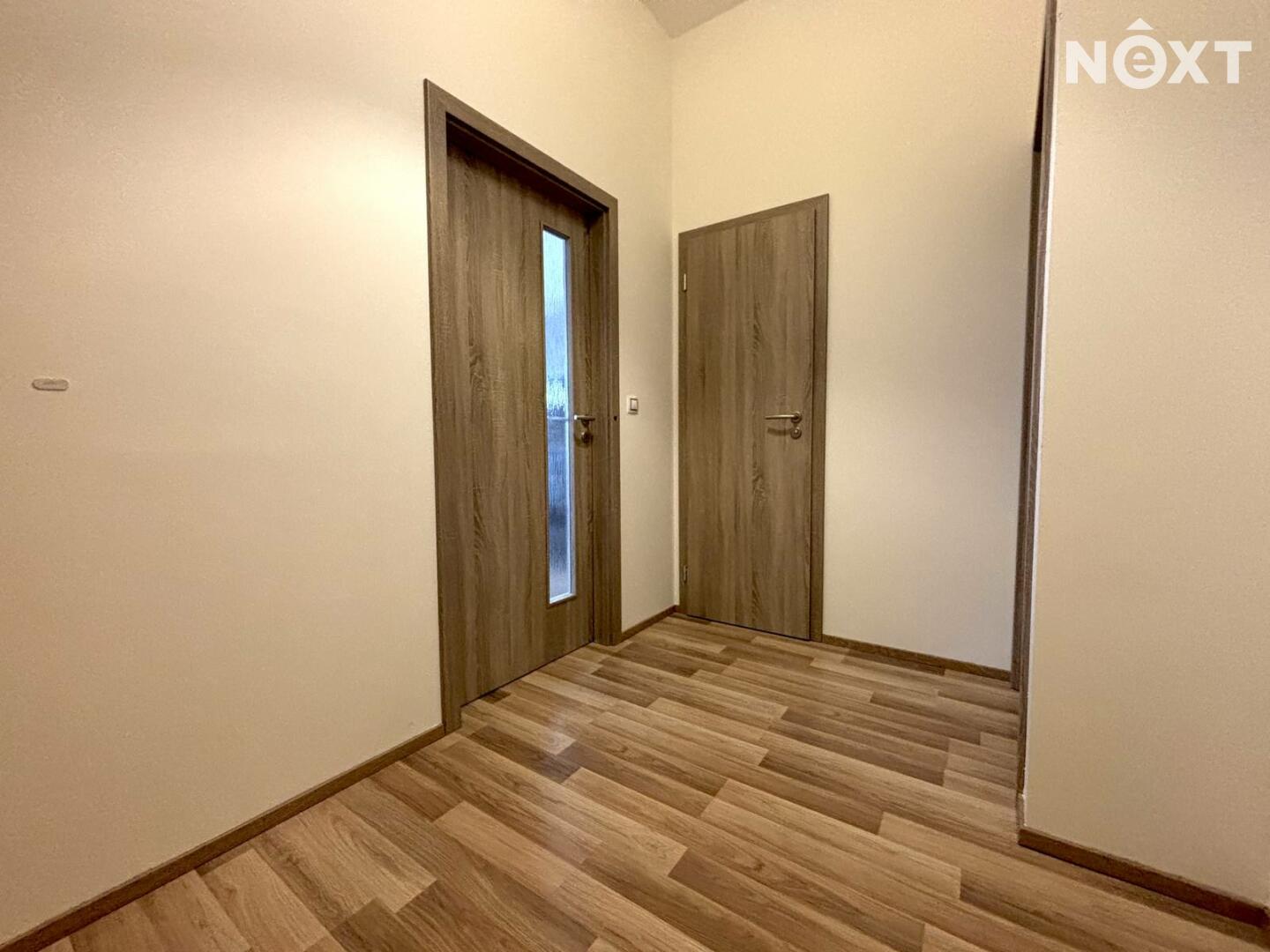 Jednotka je nabízena jako nevybavená, součástí je kuchyňská linka. Praktickým benefitem je oddělená koupelna a toaleta. K dispozici je také samostatná místnost vhodná jako úložný prostor, spíž či menší komora. K bytu náleží sklep o velikosti 3 m². Parkování je možné přímo před domem.